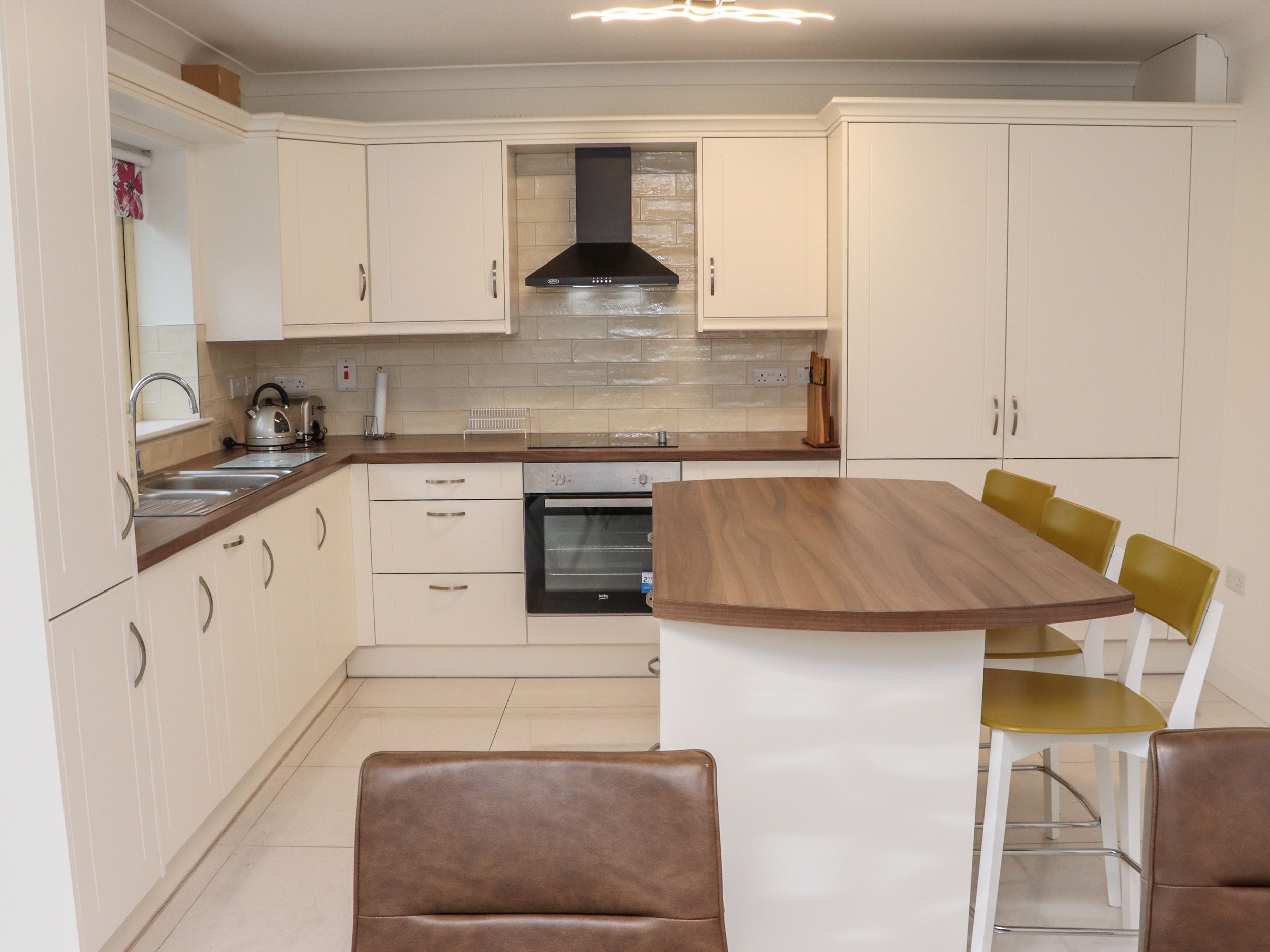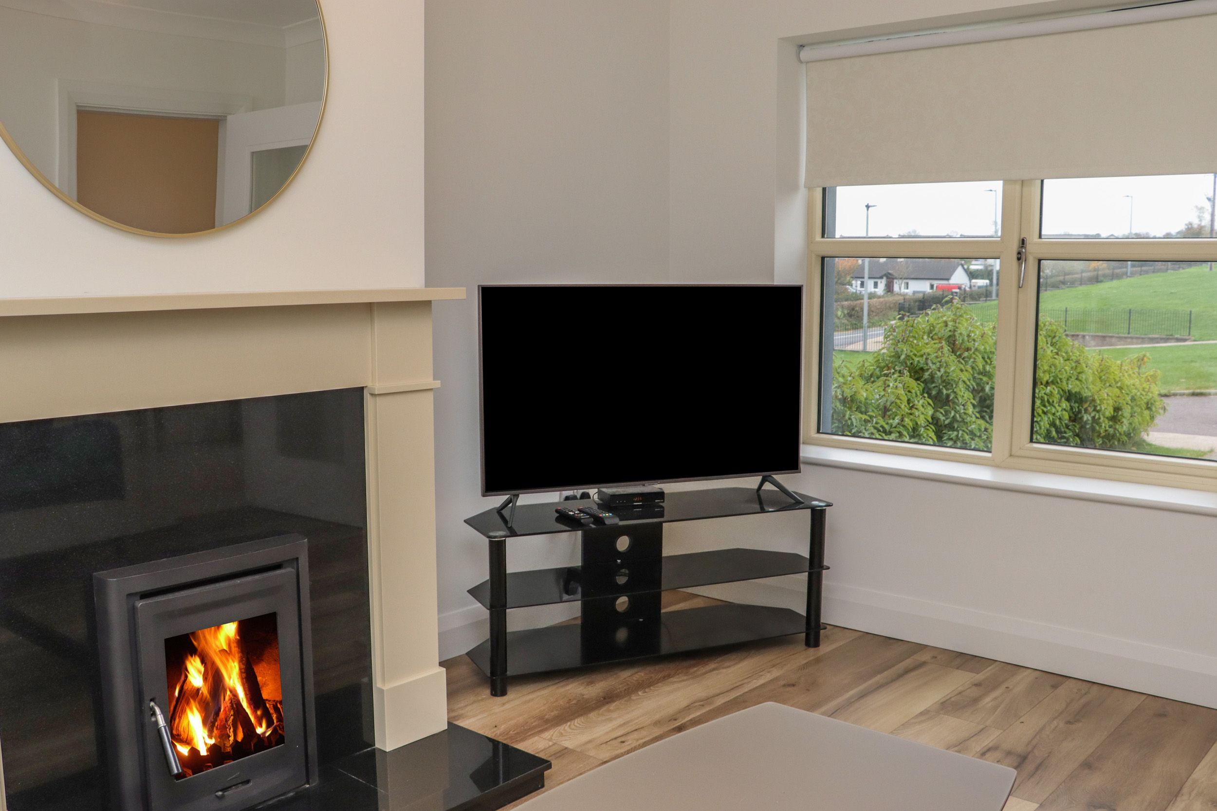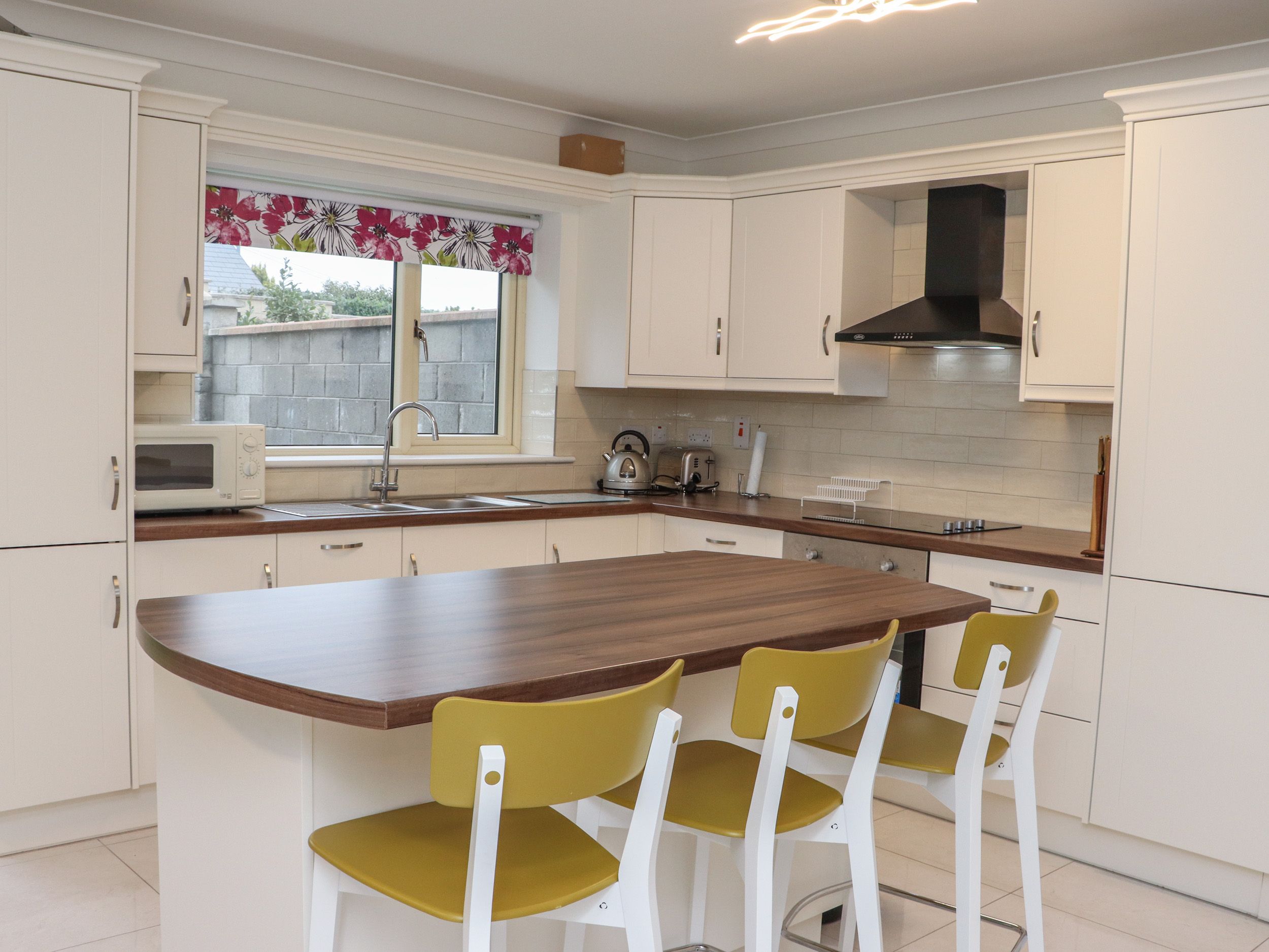 6 Lios na Mban consists of a kitchen/diner with breakfast bar, dining seating, electric oven and hob, dishwasher, washing machine, tumble dryer, fridge/freezer, microwave, kettle, and toaster and a sitting room with Smart TV and woodburning stove. The bedrooms consist of a king-size with en-suite, double, and single. There is a bathroom with bath, handheld shower, walk-in shower, and basin and WC, as well as a cloakroom with a basin and WC. Fuel, power, bed linen, and towels included in the rent. Travel cot and highchair available on request. Outside, there is an enclosed rear garden with lawn, patio and furniture and private driveway parking for two cars. Sorry, no pets and no smoking at this property. Guests can find a shop and a pub within 0.2 miles. Stay at 6 Lios na Mban for your next picture-perfect holiday. Note: There is no starter pack included for the woodburning stove. Note: There is no WiFi at the property.