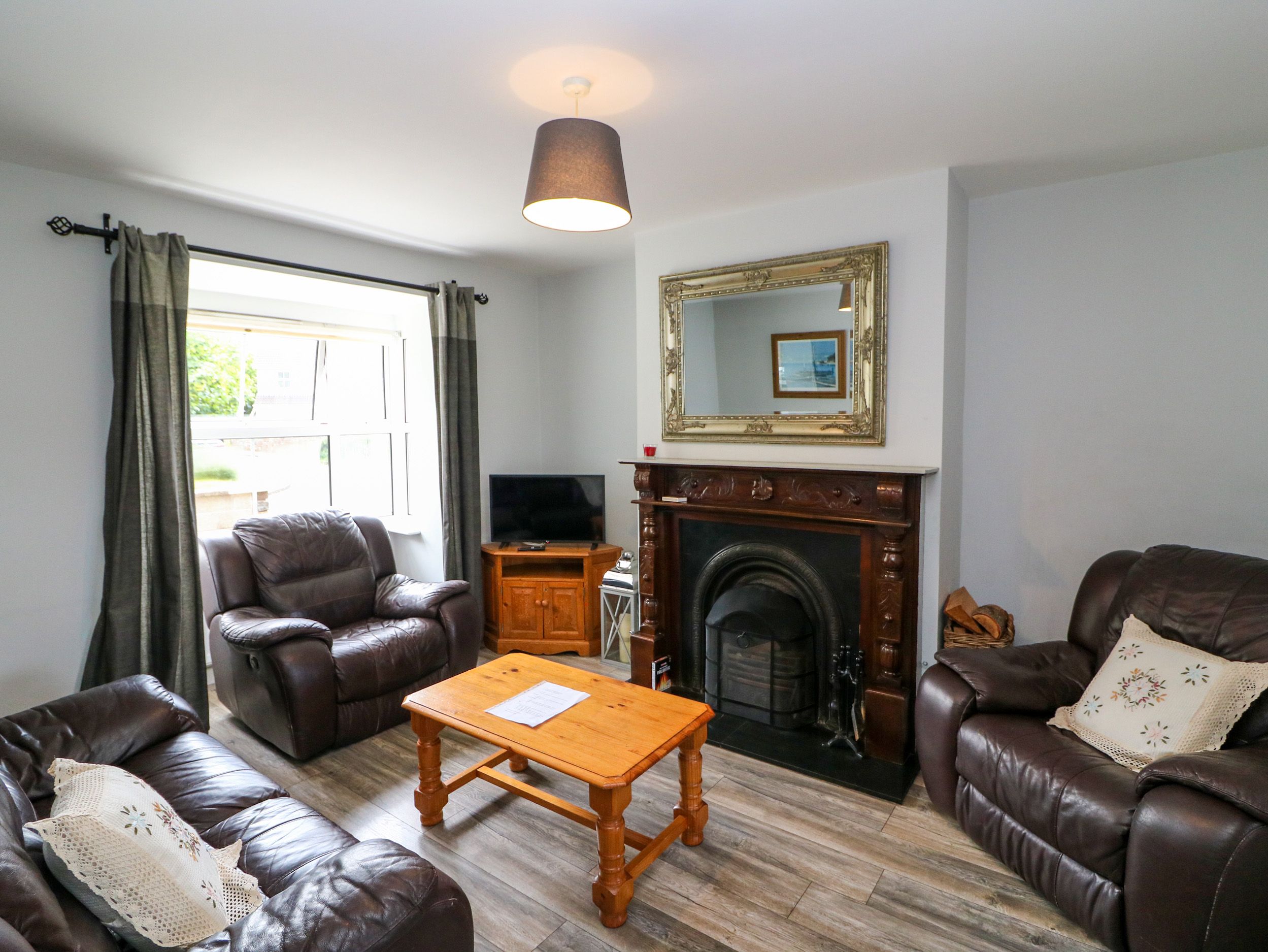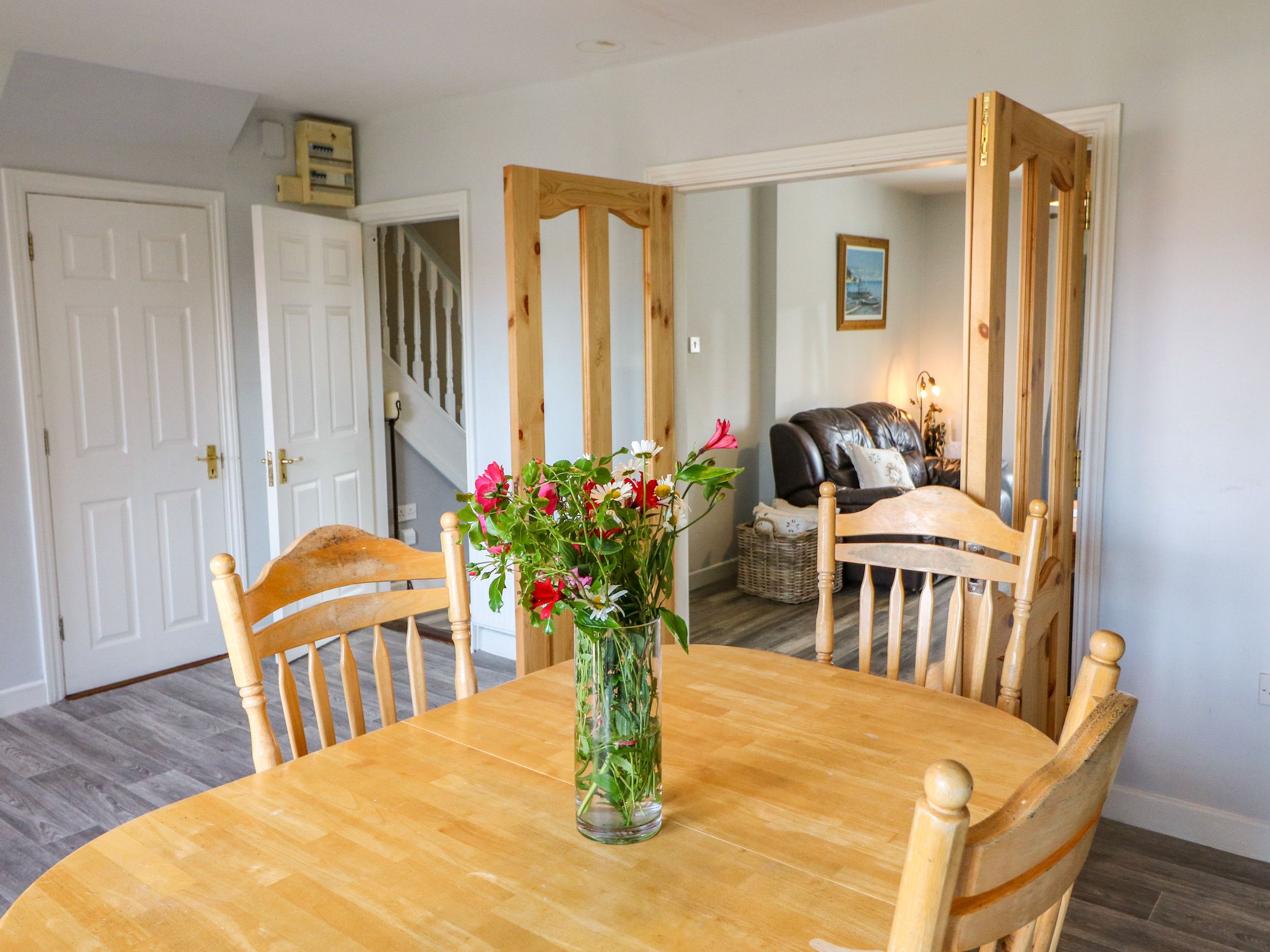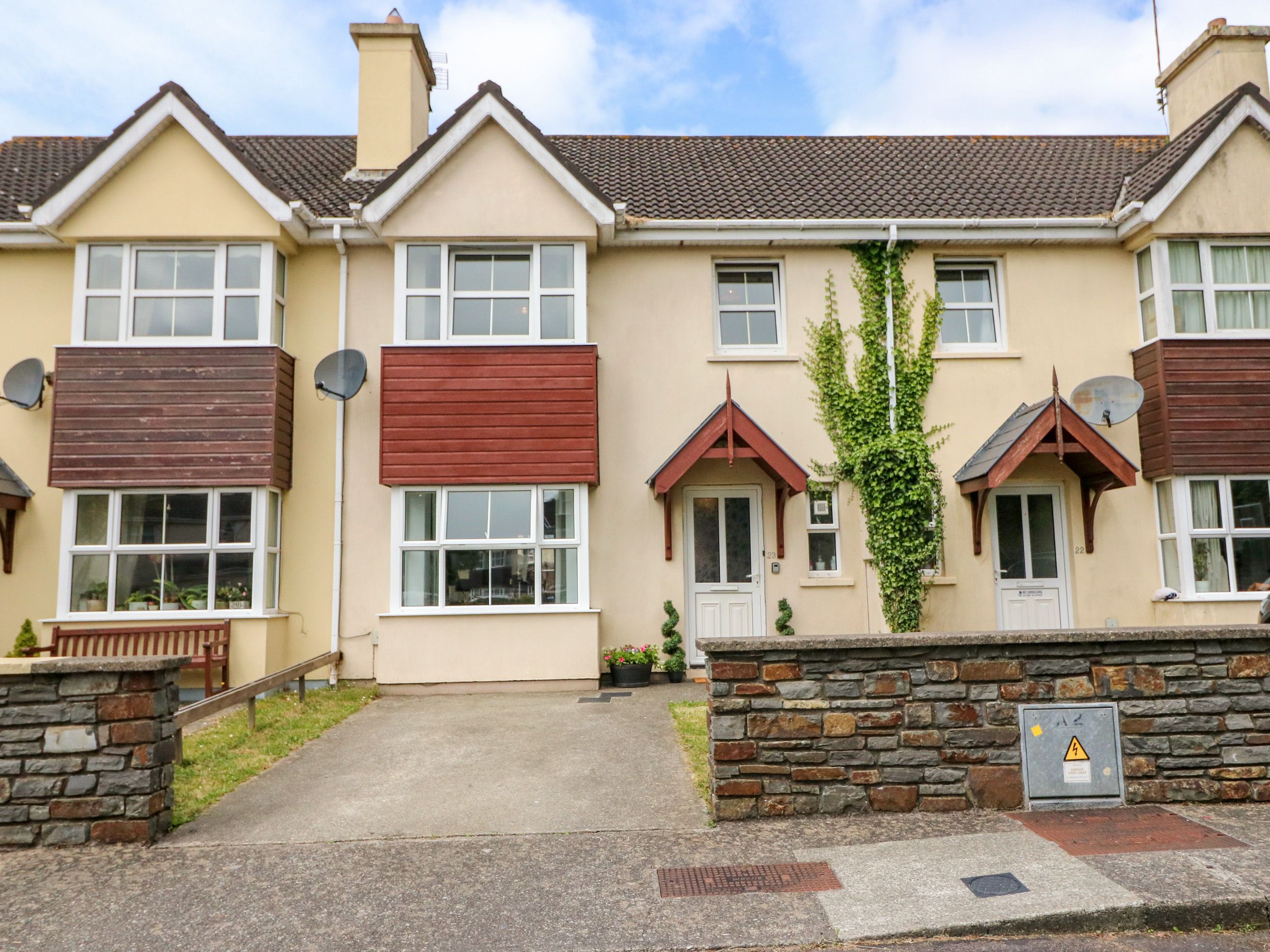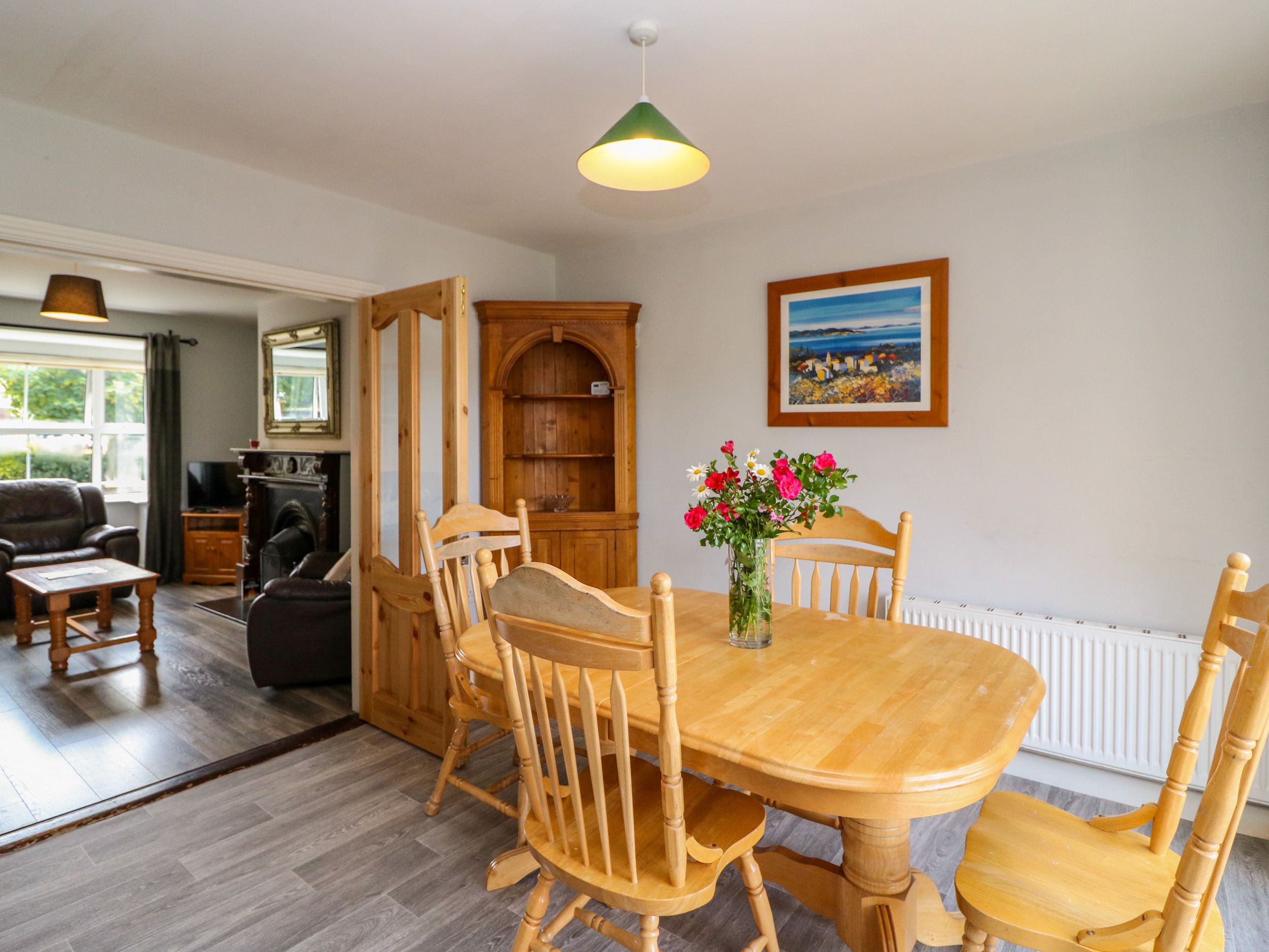 Amenities Oil central heating. Electric oven and hob, microwave, fridge/freezer, washer/dryer, dishwasher, kettle, toaster, air fryer and Nespresso machine. Smart TV with satellite channels, WiFi. Fuel and power inc. in rent. Bed linen and towels inc. in rent. Off-road parking for 2 cars. Enclosed rear garden with furniture. Two small well-behaved, house trainded pets welcome. Sorry, no smoking. Shop 0.1 miles, pub 0.4 miles, river 0.6 miles. Note: Both electric showers cannot be in use at the same time. Note: Camp bed in single room can sleep an additional guest. Note: Please keep pets on a lead once outside the front door. Note: There is a €50 pet supplement. Note: There is a €50 charge for linen/towels