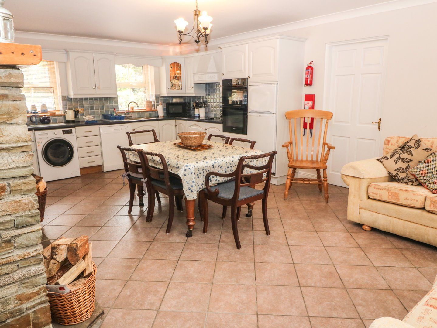 Electric central heating with woodburning stove. Electric oven and hob, microwave, fridge, freezer, washing machine, tumble dryer, dishwasher, TV with Saorview, DVD, selection of books. Electricity charged via meter reading, first €20 inc. in rent. Starter pack for stove inc. in rent. Bed linen and towels inc. in rent. Cot and highchair. Ample off road parking. Private patio with furniture, plus shared use of owners’ garden. Sorry, no pets and no smoking. Shop and pub 5 mins walk. Note: Use of sauna and gym, available by prior arrangement with owner. This property sleeps 4 guests, please enquire if you wish to bring additional guests