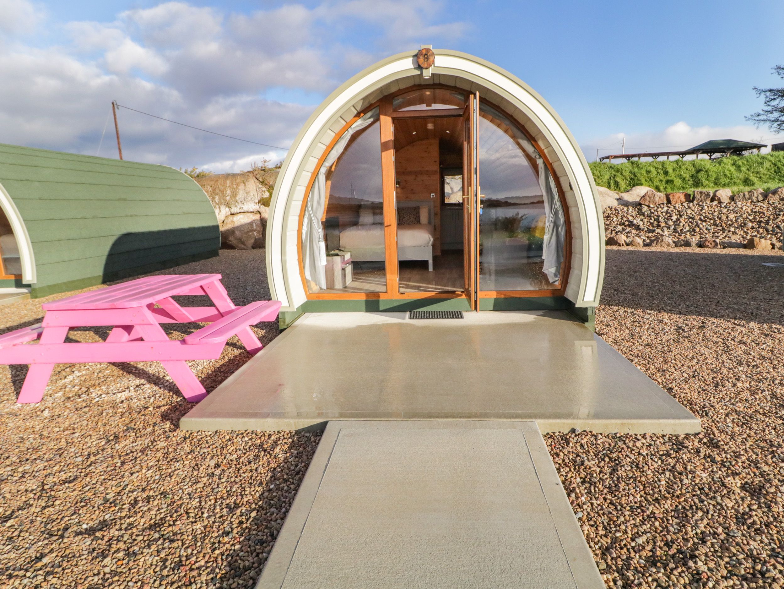 Holiday home The Wheelhouse Pod No. 8 consists of a studio-style layout with a double bed, kitchen with microwave, fridge and kettle and a sitting area with a Smart TV and sofa bed. There is also a shower room. Outside there is a private front patio and gravelled area with furniture and hot tub and off-road parking for one car. Within 0.1 miles, you will find a shop, within 0.6 miles, a pub and within 2 miles, a beach and please note that this is a pet-free and smoke-free property. WiFi, fuel, power, bed linen, and towels included in the rent. A travel cot is also available. Experience all of this and more with a stay at The Wheelhouse Pod No. 8. Note: The sofa bed can sleep up to one additional guest.