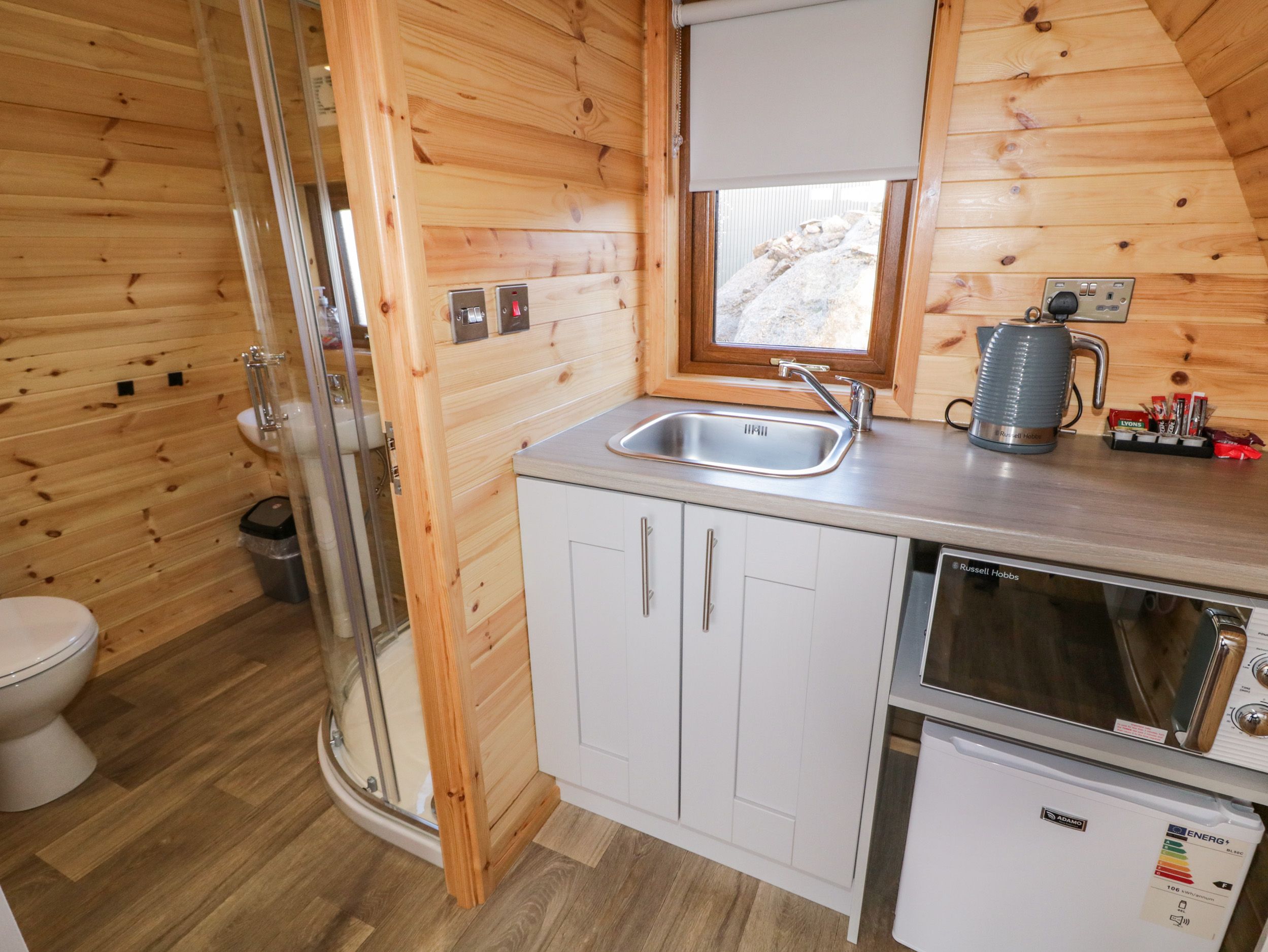 Holiday home The Wheelhouse Pod No. 5 consists of a studio-style layout with a double bed, kitchen with microwave, fridge and kettle and a sitting area with a Smart TV and sofa bed. There is also a shower room. Outside there is a private front patio and gravelled area with furniture and hot tub and off-road parking for one car. Within 0.1 miles, you will find a shop, within 0.6 miles, a pub and within 2 miles, a beach and please note that this is a pet-free and smoke-free property. WiFi, fuel, power, bed linen, and towels included in the rent. A travel cot is also available. Experience all of this and more with a stay at The Wheelhouse Pod No. 5. Note: The sofa bed can sleep up to one additional guest.