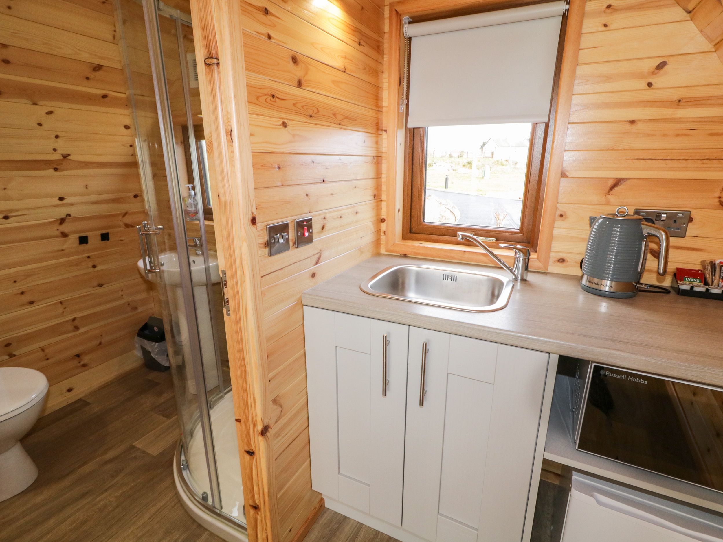 Holiday home The Wheelhouse Pod No. 3 consists of a studio-style layout with a double bed, kitchen with microwave, fridge and kettle and a sitting area with a Smart TV and sofa bed. There is also a shower room. Outside there is a private front patio and gravelled area with furniture and hot tub and off-road parking for one car. Within 0.1 miles, you will find a shop, within 0.6 miles, a pub and within 2 miles, a beach and please note that this is a pet-free and smoke-free property. WiFi, fuel, power, bed linen, and towels included in the rent. A travel cot is also available. Experience all of this and more with a stay at The Wheelhouse Pod No. 3. Note: The sofa bed can sleep up to one additional guest.