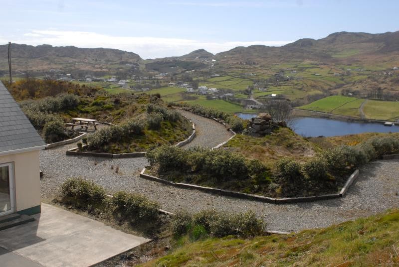 Superb four bedroom bungalow overlooking Donegal bay and Slieve League. Located in the very scenic south-west Donegal. On over an acre of professionally landscaped grounds. Ideal base for touring Co. Donegal. The wonderful gardens overlook Teelin Bay, which is nestled between the gardens and Slieve League. Must be seen to be appreciated! Spectacular landscaped grounds incorporating a private area for sun bathing. Incorporating natural stone seats and incorporating a good variety of native plants, the gardens were designed to achieve a natural feel.