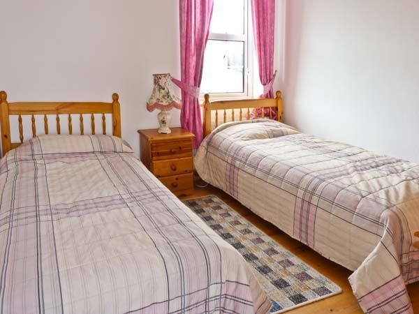 Three bedrooms: 1 x ground floor double, 1 x ground floor twin, 1 x twin with basin and WC. Ground floor shower room with shower, basin and WC. Fitted kitchen. Sitting room (seats 5) with dining area and open fire.