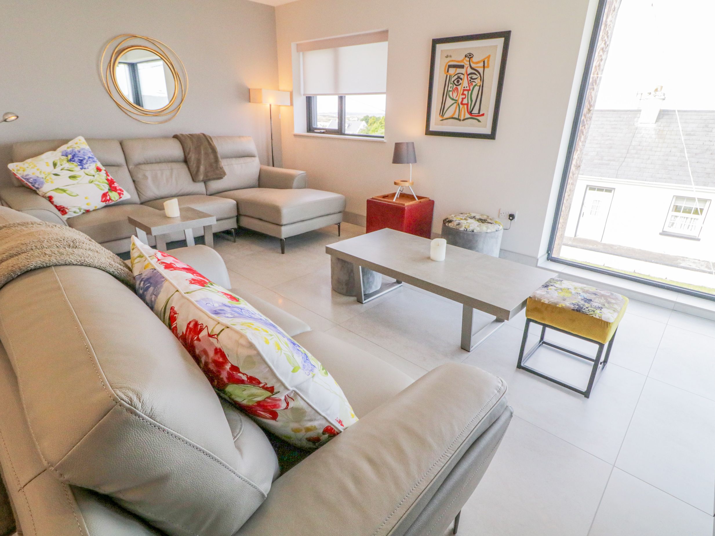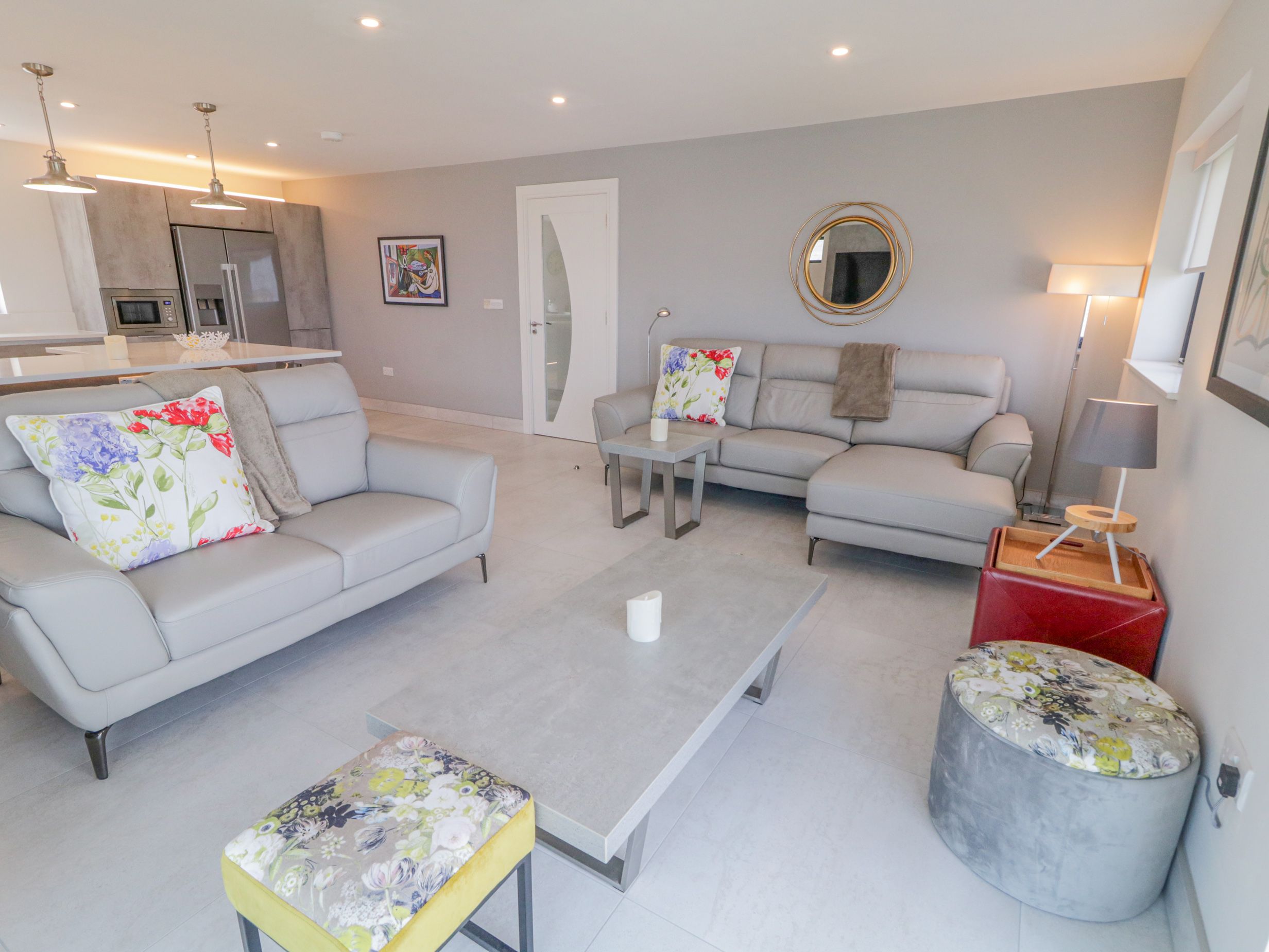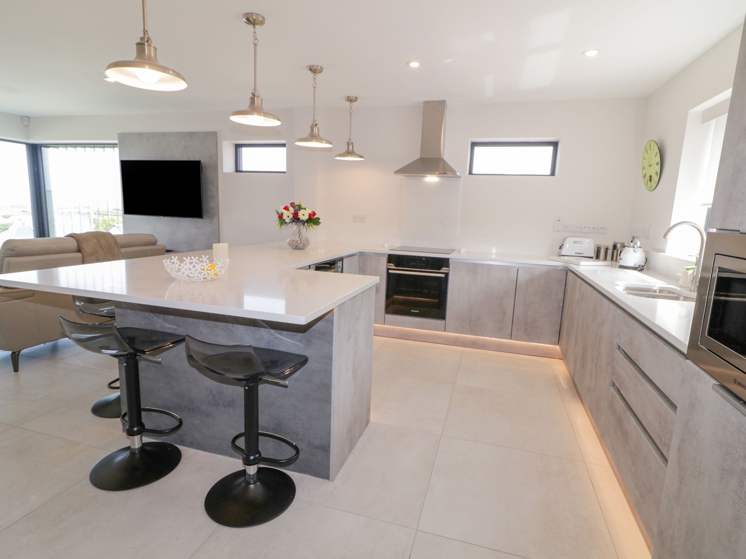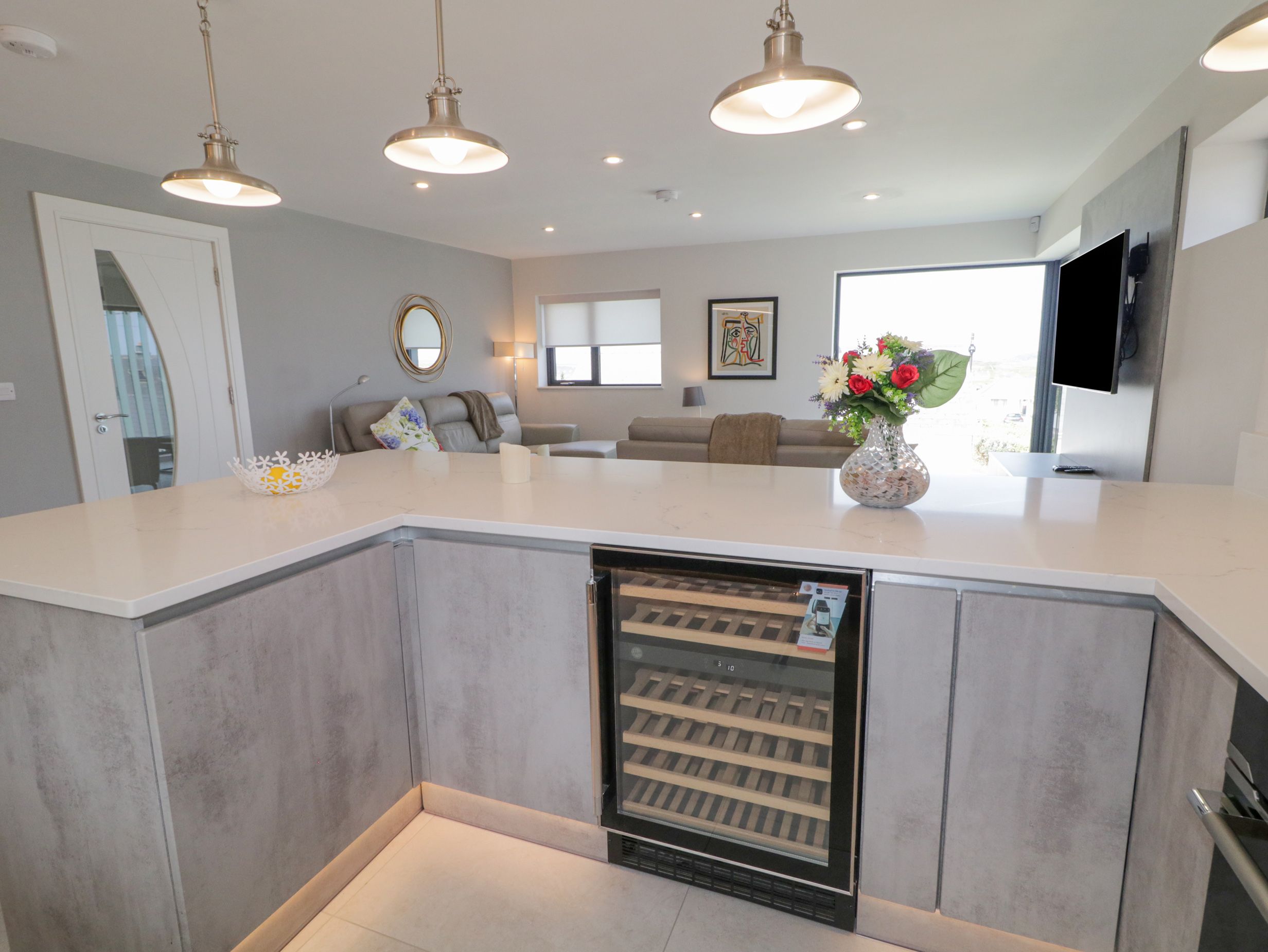 Accomodation Details Single-storey. Three bedrooms: 1 x double with TV and en-suite walk-in shower and basin and WC, 2 x double. Bathroom with bath, walk-in shower, basin and WC. Open-plan living space with kitchen, dining area and sitting area. Utility