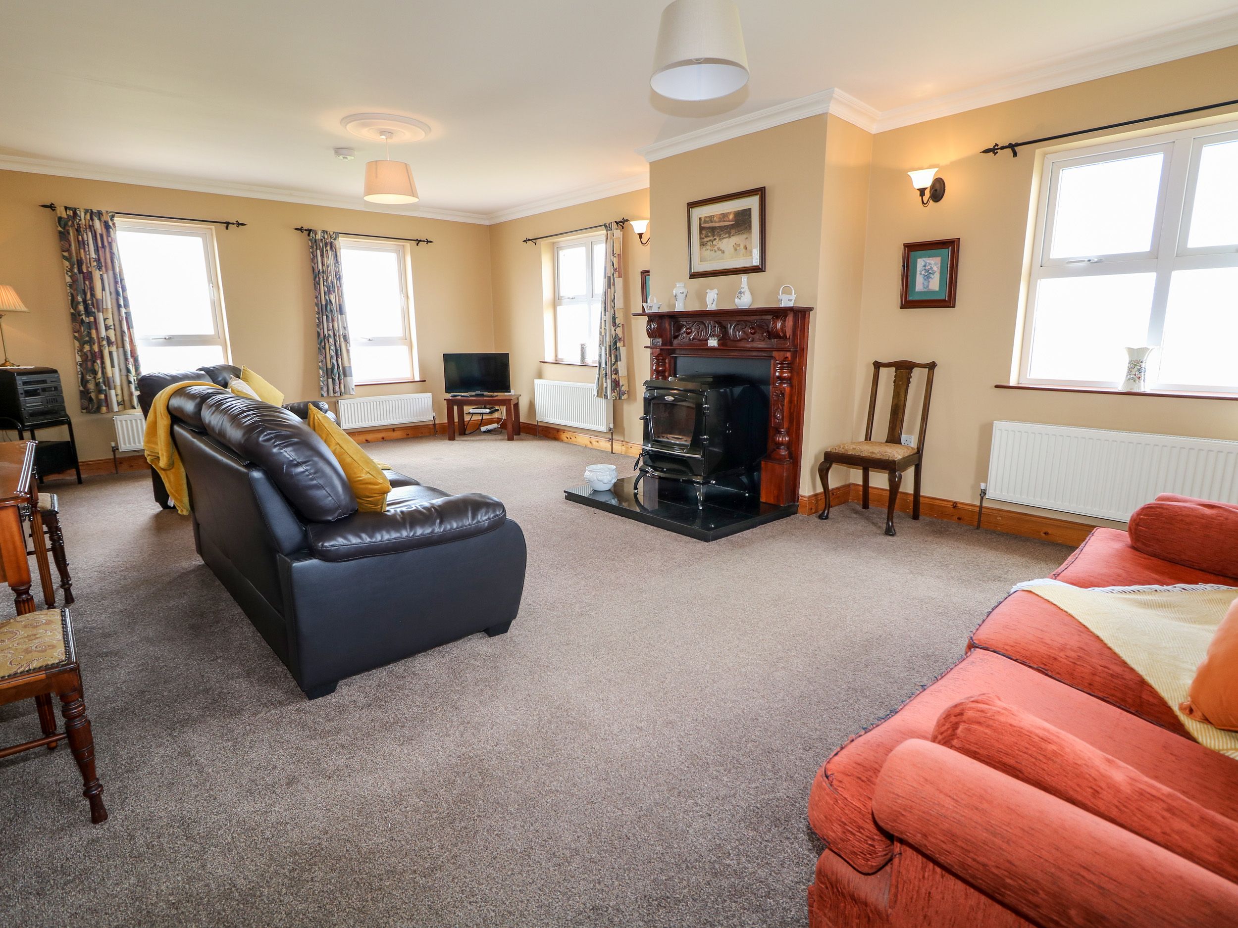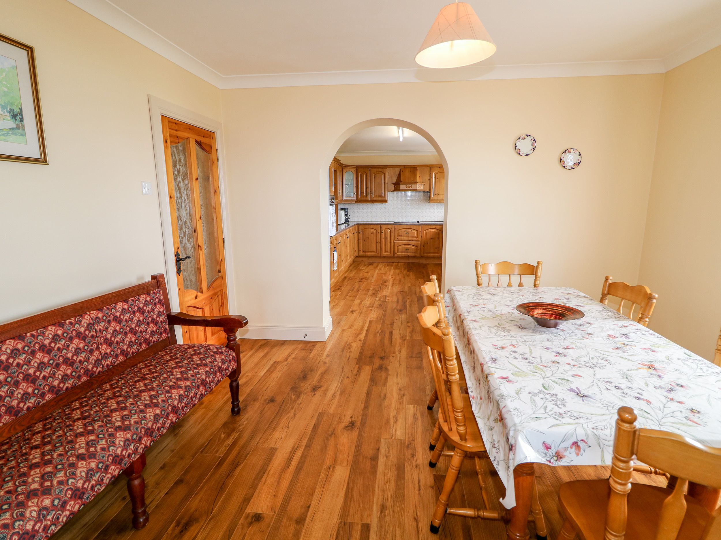 Oil central heating. Electric oven and hob, microwave, fridge/freezer, washing machine, tumble dryer, dishwasher, TV, WiFi. Fuel and power inc. in rent. Bed linen and towels inc. in rent. Highchair available. Ample off-road parking. Front lawn. Sorry, no pets and no smoking. Shop 2 miles, pub 1.8 miles. Please note: This property accepts bookings of 7 nights or more with arrivals on Saturdays only