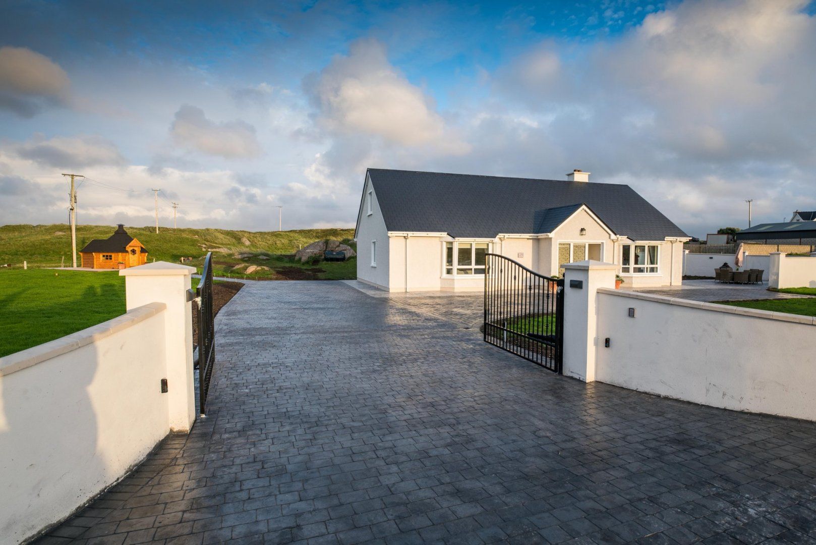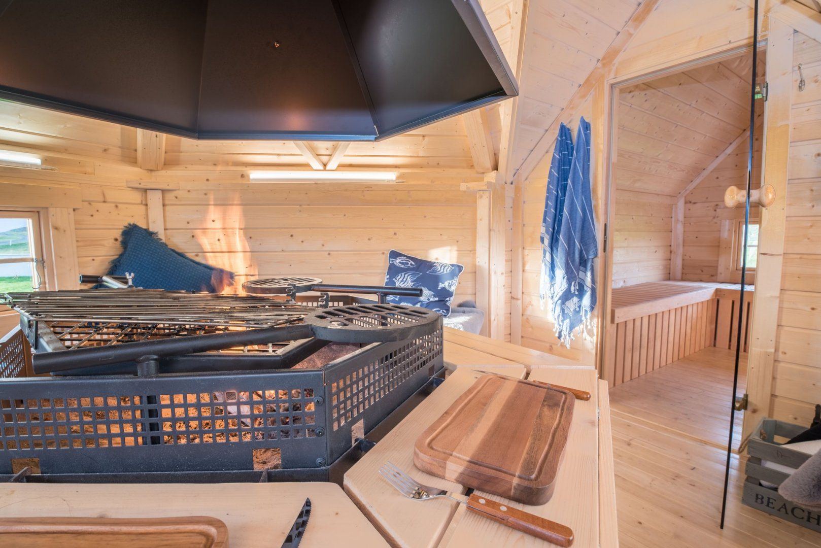 Outside there is a separate BBQ and Sauna hut. additionally there is a outdoor furnished patio area with cozy blankets. There is also a array of outdoor games including Giant Jenga, French Boules, Croquet and Swing ball to help you enjoy your stay.