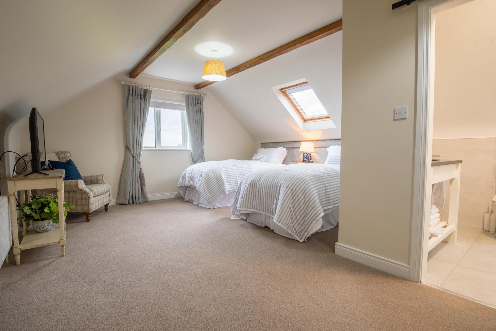 First floor, 2 Luxury Single beds with ensuite and 43" Tv.