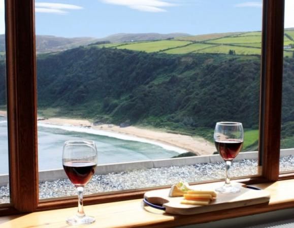 All rooms provide panoramic views of Kinnagoe Bay and Large relaxation lounge with TV & dvd, Bay view from sun lounge, Kitchen with all mod cons.