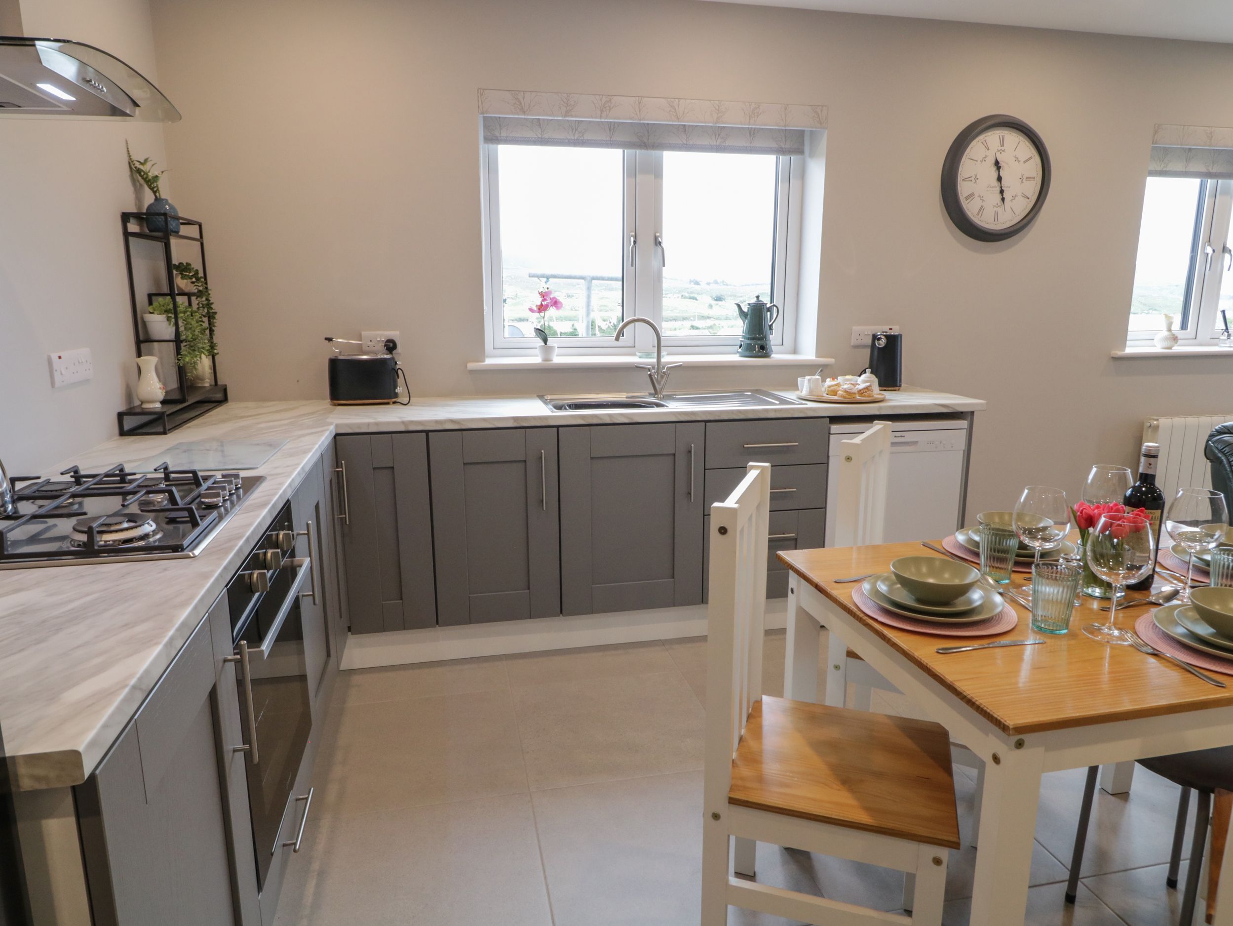 Holiday home ARD NA GHAOITHE is a duplex apartment over ground and first-floor apartment, consisting of an open-plan living space with a kitchen with gas hob, dishwasher, fridge/freezer, and oven, a dining area with dining seating, and a sitting area with a smart TV. The bedrooms consist of a king-size and family room. Outside, there is private driveway parking for two cars. Sorry, no pets and no smoking at this property. Guests can find a shop and a pub within 0.5 miles. WiFi, fuel, power, bed linen and towels are all included in the price. Enjoy a refreshing break with your loved ones at Ard Na Ghaoithe. Note: Check-in from 3 pm, check-out by 11 am. Note: There is a good housekeeping bond of 250 EUR.