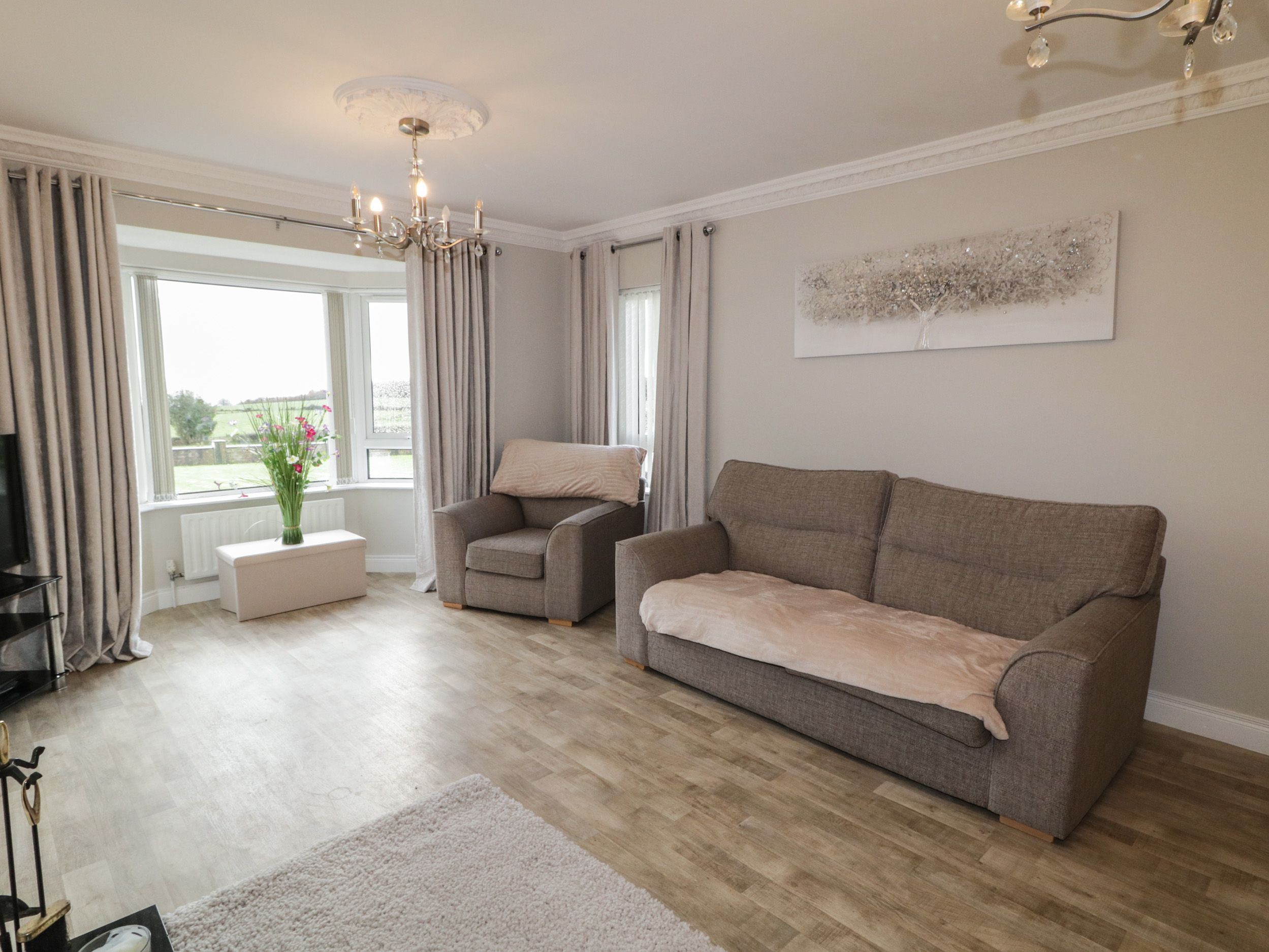 Holiday home St. Michael's consists of a kitchen/diner with an oven, hob, fridge/freezer, dishwasher, a utility with a microwave, washing machine, tumble dryer, a sitting room with open fire and, and a bar/games room with pool table and TV. The bedrooms consists of two family rooms with double and single beds, one with an en-suite walk-in shower, and one with an en-suite bath, a ground-floor double with en-suite walk-in shower, a ground-floor double with TV, and another ground-floor double. There is a ground-floor bathroom and a claokroom. Outside, there is an enclosed, rear garden with artificial lawn, gravel, hot tub, barbecue, and fire pit, plus off-road parking available. Two well-behaved pets welcome. Sorry, no smoking. Shop 3.1 miles, pub 1.4 miles. WiFi, fuel, power, starter pack for open fire, bed linen and towels inc. in rent. Bring all the family to St. Michael's. Note: Cloakroom accessed via utility.