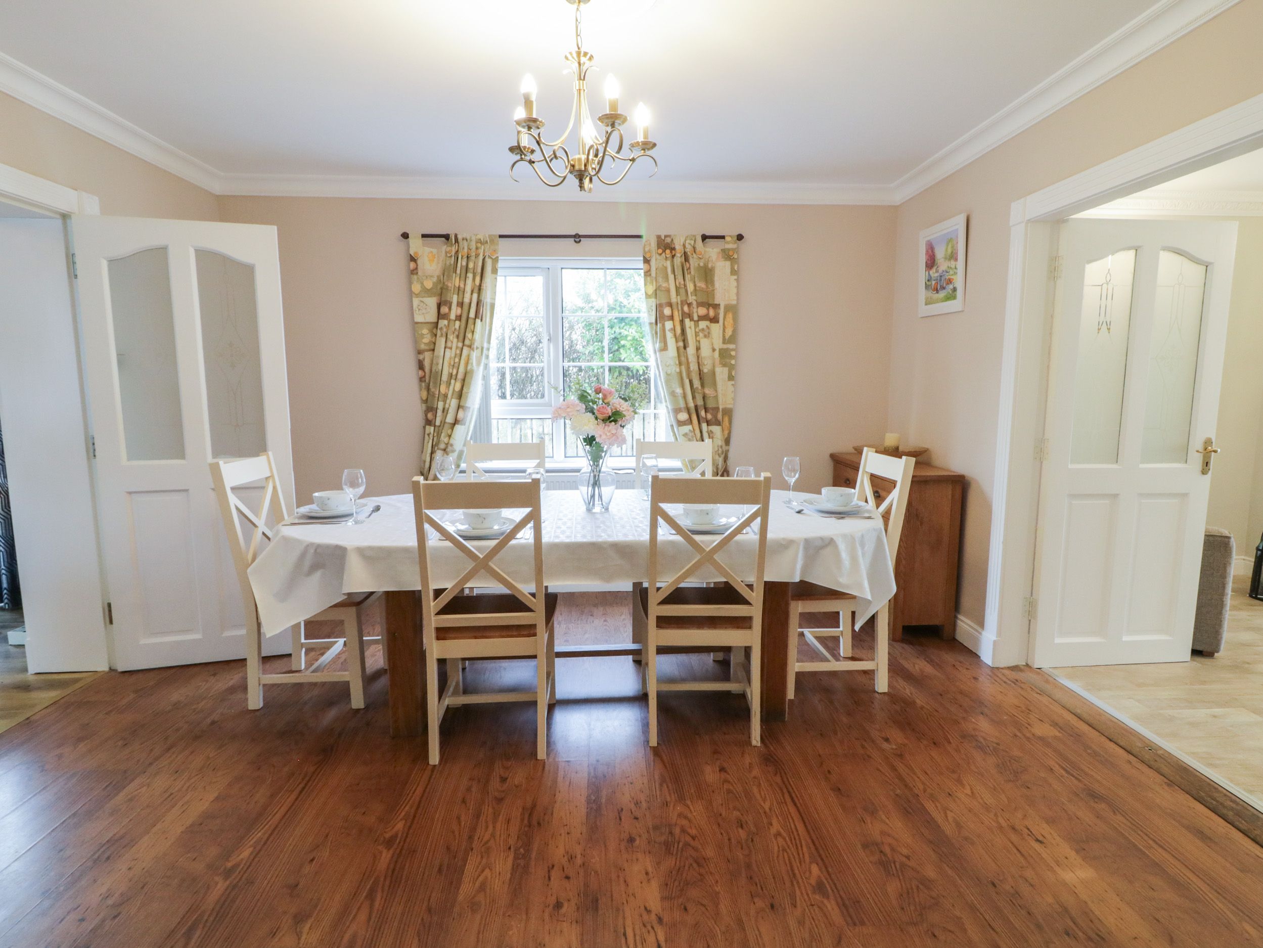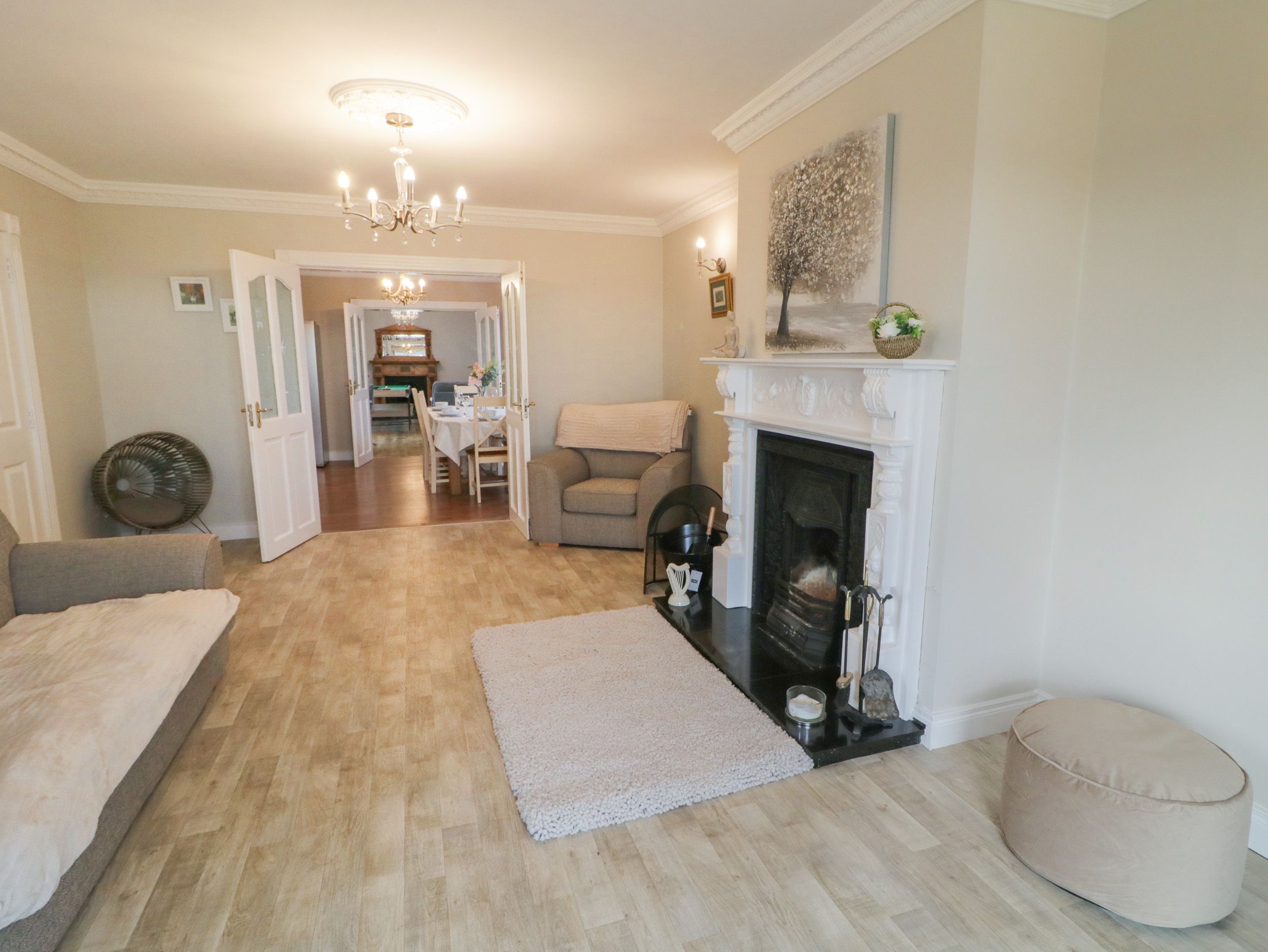 Accomodation Details Five bedrooms: 1 x ground-floor double with en-suite walk-in shower, basin, and WC, 1 x ground-floor double with TV, 1 x ground-floor double, 1 x family room with double, single, and en-suite bath, basin, and WC, 1 x family room with double, single, and en-suite walk-in shower, basin, and WC. Ground-floor bathroom with corner bath, walk-in shower, basin, and WC. Cloakroom with basin and WC. Kitchen/diner. Utility. Sitting room with open fire. Bar/games room