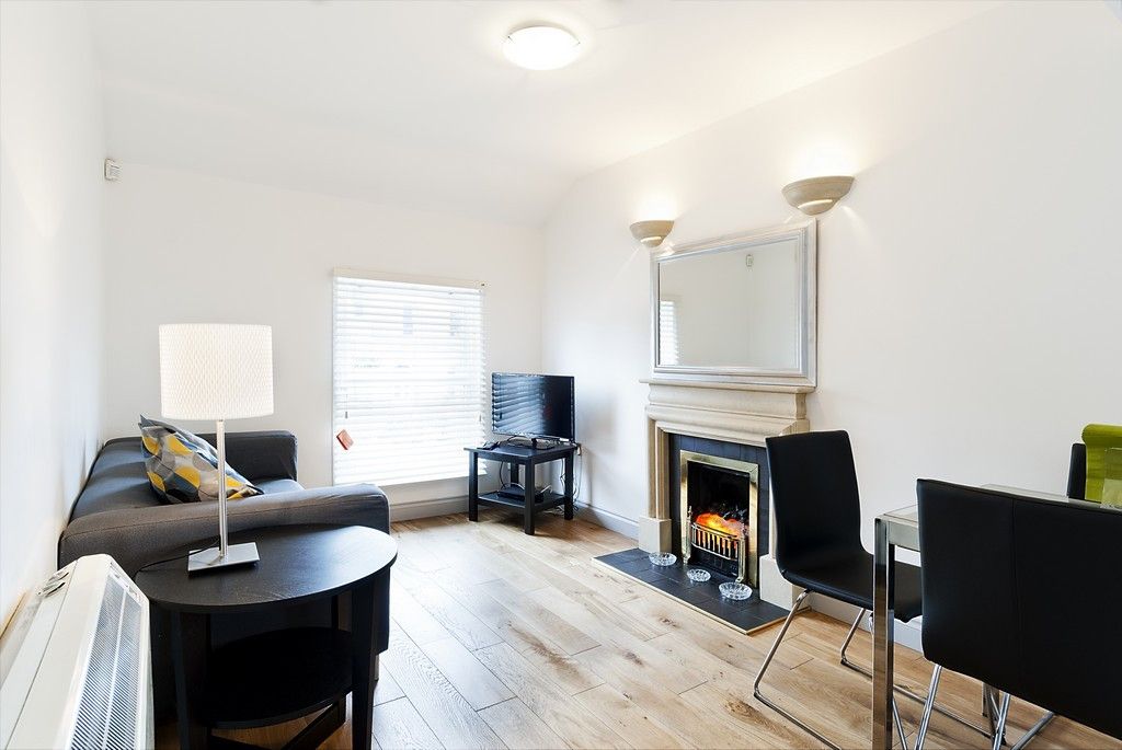 Apartment 2 is a cosy, bright 1 bedroom apartment. On the first floor, this apartment overlooks the redbrick houses of the residential area it is in. With private parking, easy access to the city centre via LUAS or bus, this apartment is ideally situated.With neutral-toned walls and contrasting furniture, this apartment has a very modern feel. Couches and chairs in the living room face the fireplace. Adjustable lighting provides a great mood setter, and the natural light from the window brings a fresh feel. The attached kitchen has accented tiling, good counter space and a wood finish. With a fridge, microwave, toaster, kettle and oven/stove, this kitchen can cater for anyone.