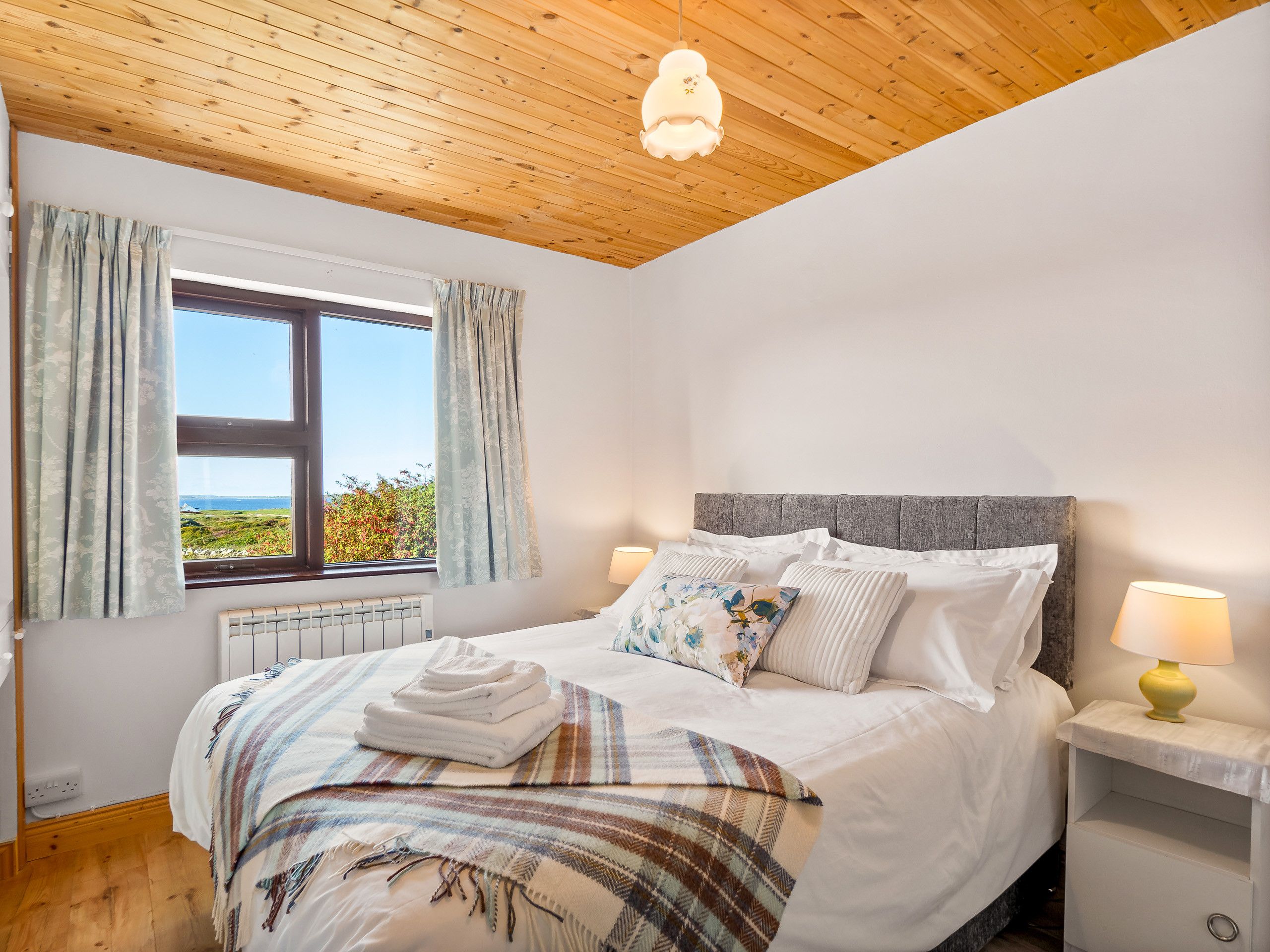 A third bedroom with a king-size double bed has a sea view of picturesque Mannin Bay.