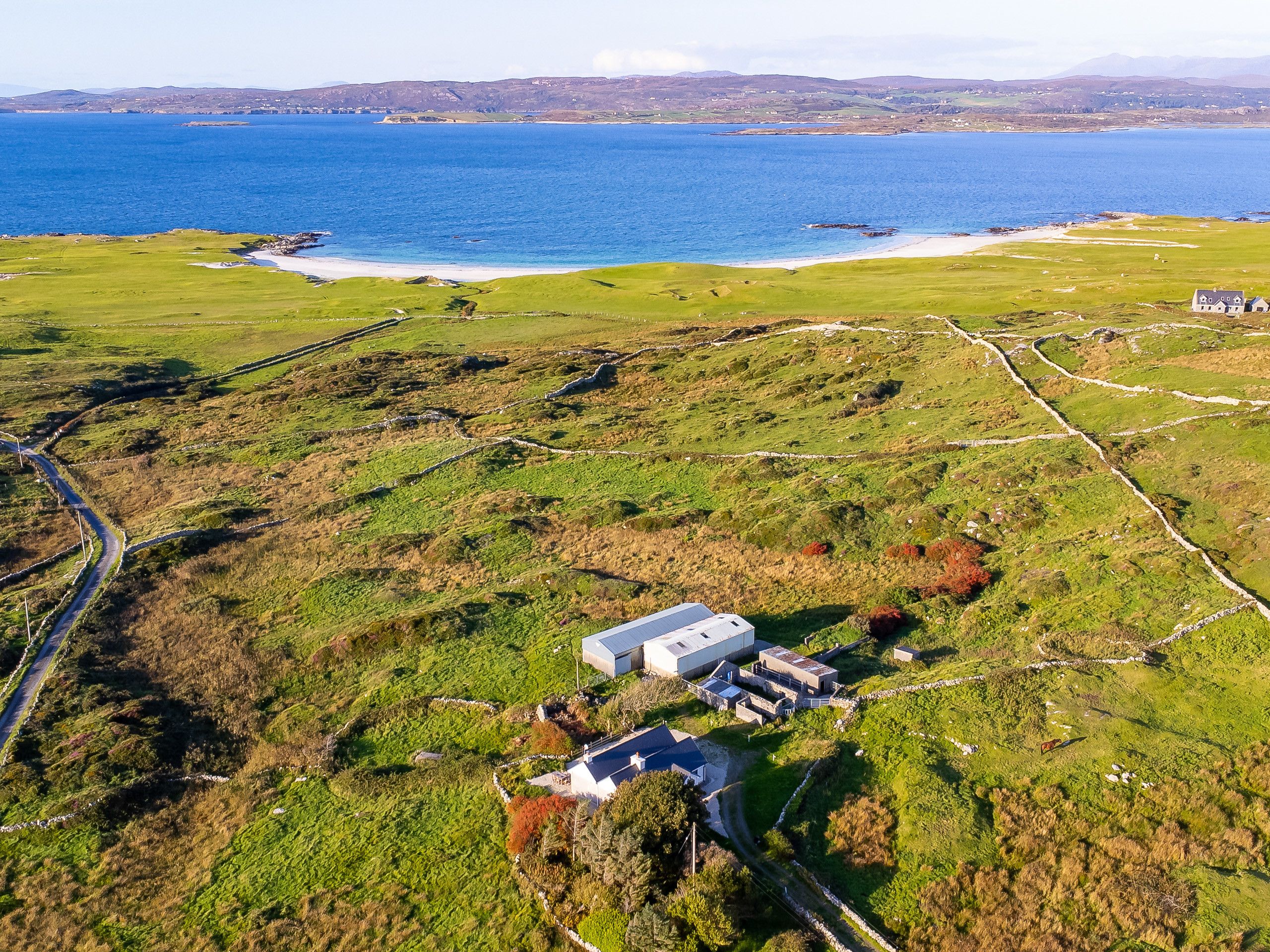 A short stroll from the secluded beaches of Mannin with its miles of pristine white sandy beaches, framed by a large sky over the Atlantic Ocean and Connemara’s Twelve Pins mountains to the East. Access to many acres of unspoiled beach terrain for ramblers adhering to the welcoming signage of local landowners.