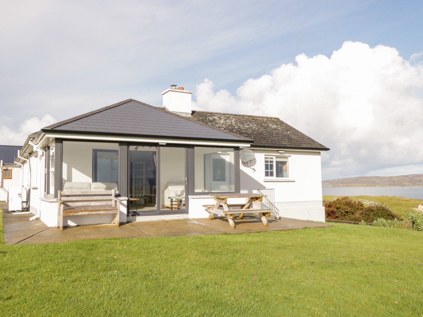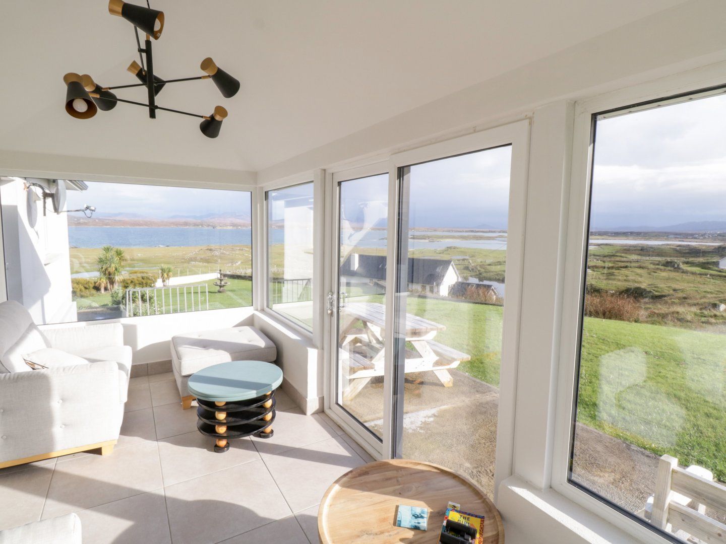 Holiday home The living areas in this single-storey property consist of an open-plan kitchen, dining area and sitting area with an electric oven and hob, microwave, fridge/freezer, and dishwasher, a utility with washing machine and tumble dryer, a sitting room with TV and woodburning stove, a conservatory, and a cloakroom. The bedrooms consist of a super-king-size, a double with en-suite, a further double, and a twin, along with a bathroom. Outside there is a wrap-around lawn with patio and picnic bench, and a private sloped driveway for four cars. One well-behaved dog welcomed, but sorry, no smoking. You'll find a shop and a pub in 0.2 miles, and the beach in 0.7 miles. Seacrest is well-positioned to explore the coast and countryside of County Galway. Note: There are steps to the exterior of the property. Note: Check-in from 3:30pm, check-out by 10am.