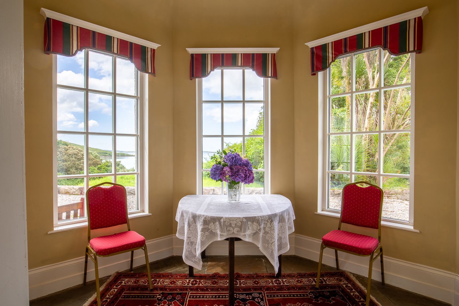Guests can explore over 50 acres of gardens and landscaped grounds, get lost amidst the ancient walkways, and enjoy spectacular views of the sea and the mountains, a tranquil ornamental lake, and a private foreshore with a sauna, sea pool, and swimming facilities.