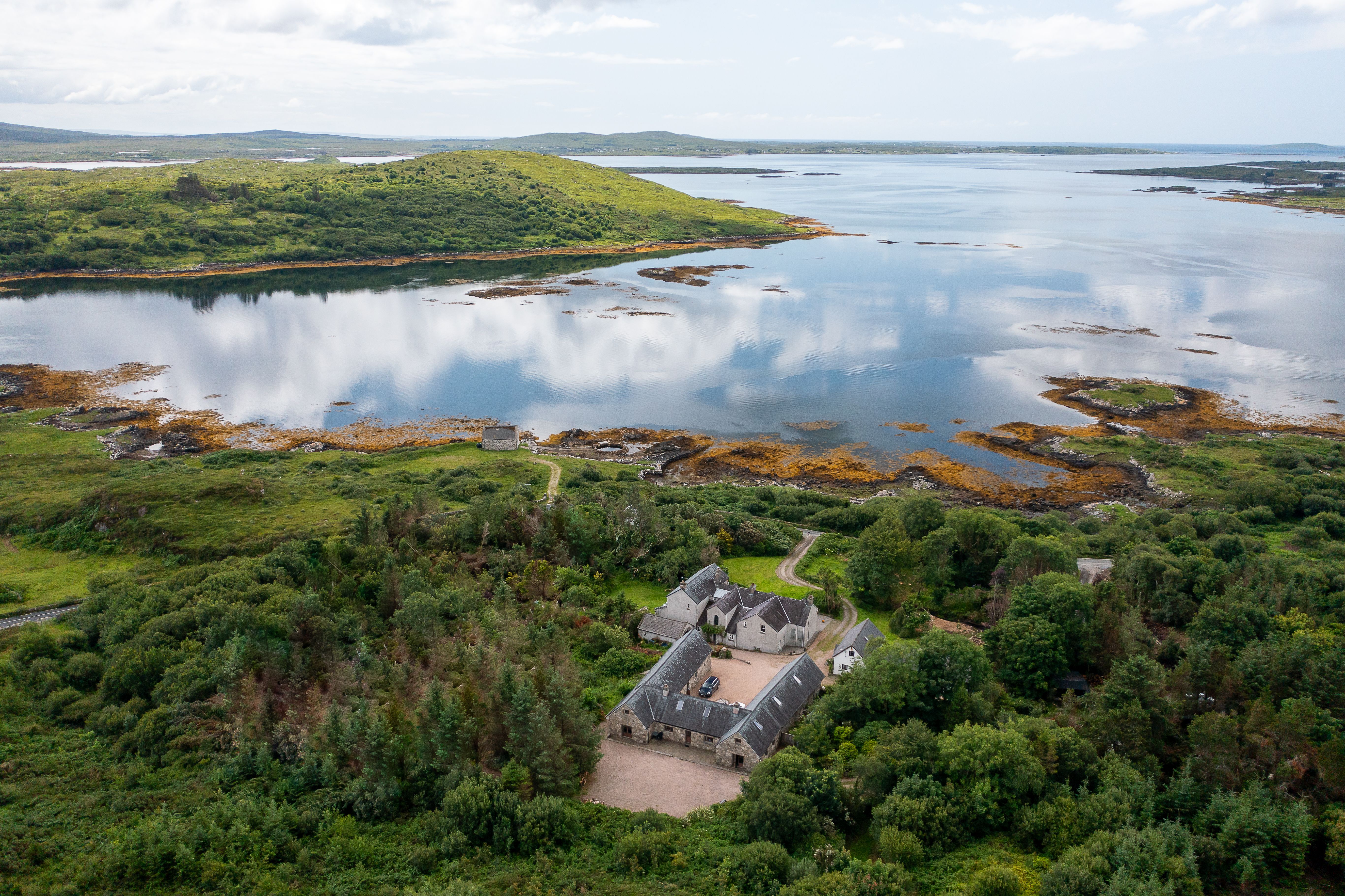 Historic manor house and grounds situated in the heart of Connemara on Ireland's Wild Atlantic Way. This is an adventurer's paradise, located in an elevated position overlooking a sheltered bay on the Atlantic Ocean.