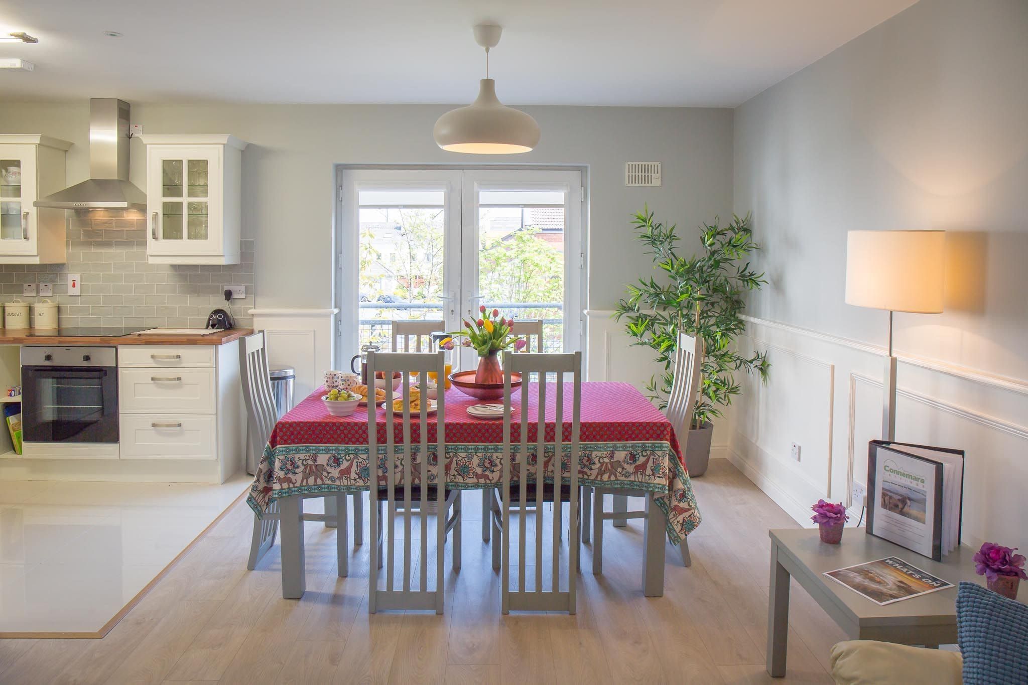 This chic townhouse is all about location, situated right in the heart of Clifden, a short drive to white sandy beaches, within walking distance to gourmet restaurants & a large selection of pubs offering traditional and modern music. This townhouse provides comfort & modern living. Ideal for couples and families who want a holiday along the Wild Atlantic Way.