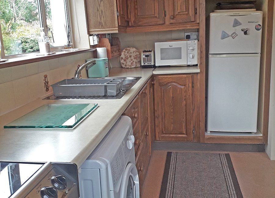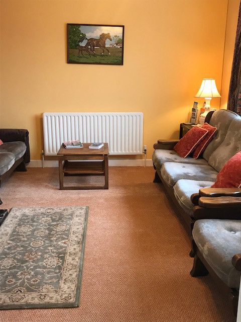 large bright sitting room with an open fire. Down the hall you will come to a homely kitchen
