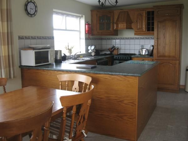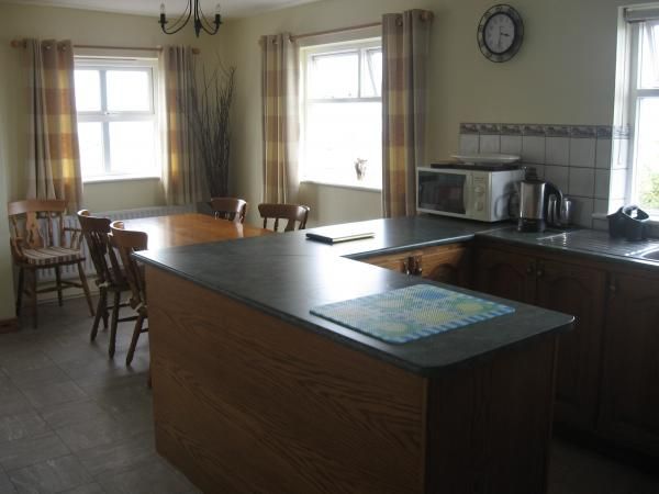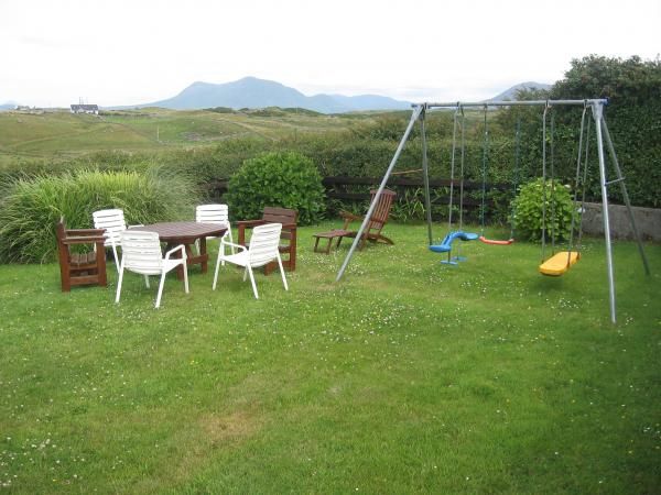 There is a secure garden with swings and furniture to enjoy on a summer's evening and ample parking surrounding the property. The warm relaxing living room has an open stone fireplace. The fully fitted modern kitchen and dining area have spectacular views of Inis Bofin, Inis Turk and Clare Island.
