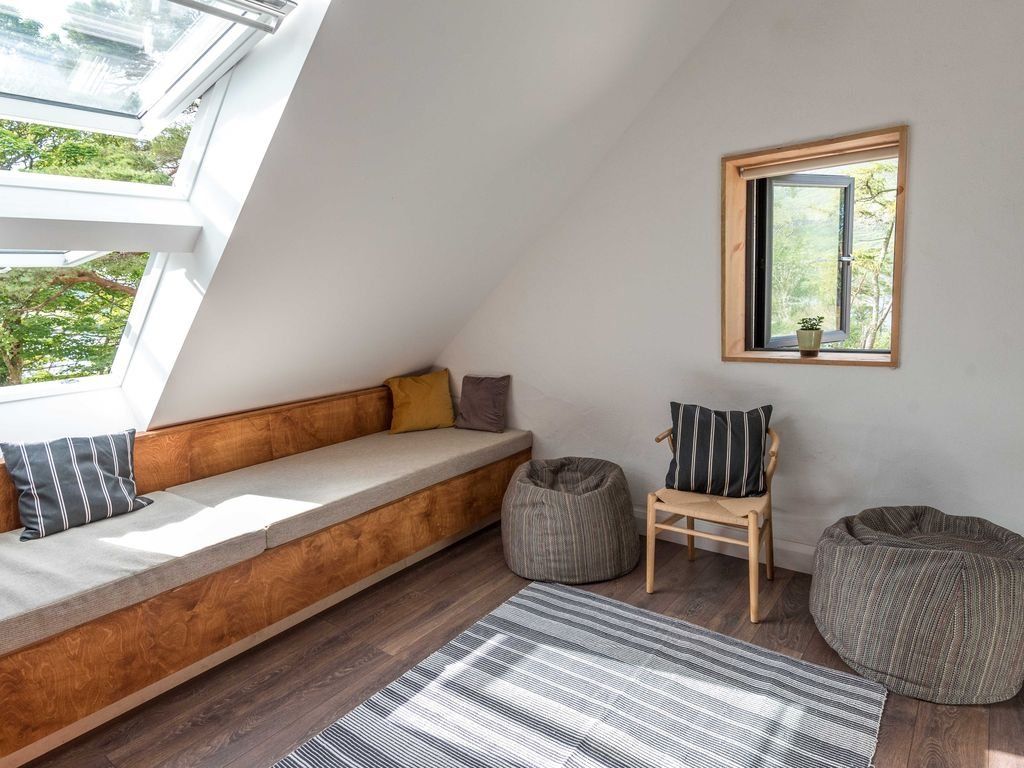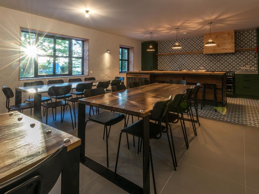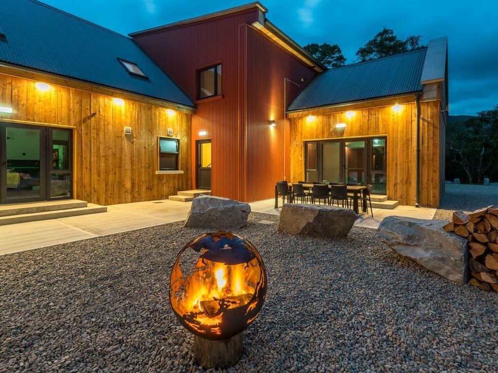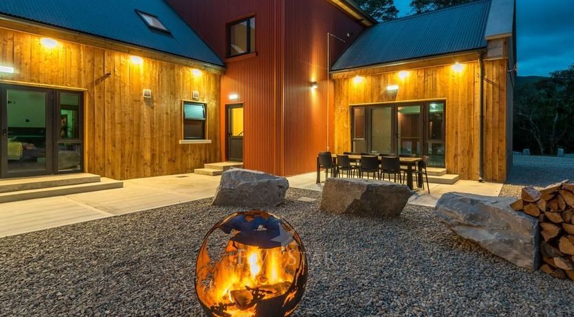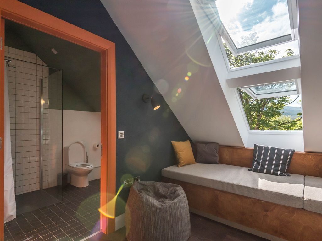 The lodge features a bespoke fully equipped kitchen with a large dining area. A stylish lounge opens out onto an extensive outdoor area, complete with outdoor seating and two fire pits, with magnificent views of the surrounding mountains and sea - the perfect place to sit and watch the sun go down, surrounded by nature. Each of the ten spacious ensuite bedrooms is individually designed with bespoke features. If you need a bit of time out, you can curl up with a good book in one of our funky reading nooks. The lodge also has a large conference room/studio that can be customised to your needs - perfect as a conference room, yoga studio, or workshop space - opening out onto an outdoor workspace.