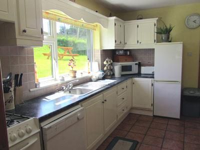 The kitchen is well stocked with all the cooking and eating utensils necessary for a self-catering holiday, as well as a cooker, fridge & freezer, washing machine with tumble dryer, cd player and radio.