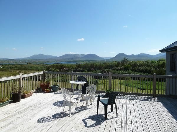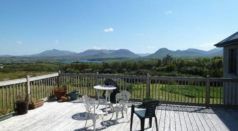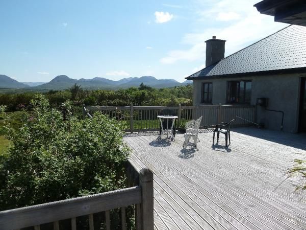 Large Connemara Cottage is a spacious stone-faced house with spectacular views of the Twelve Pins mountain range and Ballinakill Bay. It is located in Moyard, just 5 miles from Clifden and 3 miles from Letterfrack. There is a large wooden deck at the rear of the house offering the ideal viewing spot.