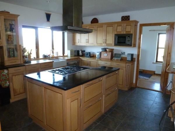 The house has a big entrance hall with a large sitting room, a stone-face fireplace which is adjoined by the dining room. The kitchen combines modernity with the traditional and has a Stanley range and an island with a 5-hob cooker with oven and grill. The kitchen is fully equipped with a microwave and dishwasher. There is a utility room off the kitchen and also adjoining the kitchen is a small sitting room/snug - ideal spot for the children to play or a quiet space to read.