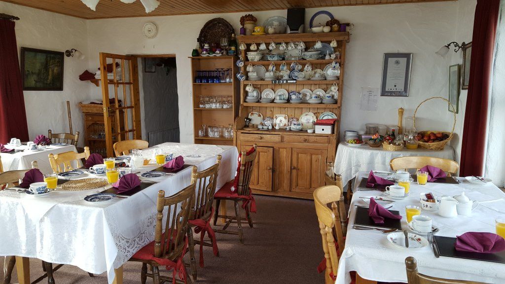 Take the N59 from Galway to Letterfrack Village, turn right to Tullycross, follow the road to the village of Tully. Continue on the main road, house is located beside Renvyle Castle.