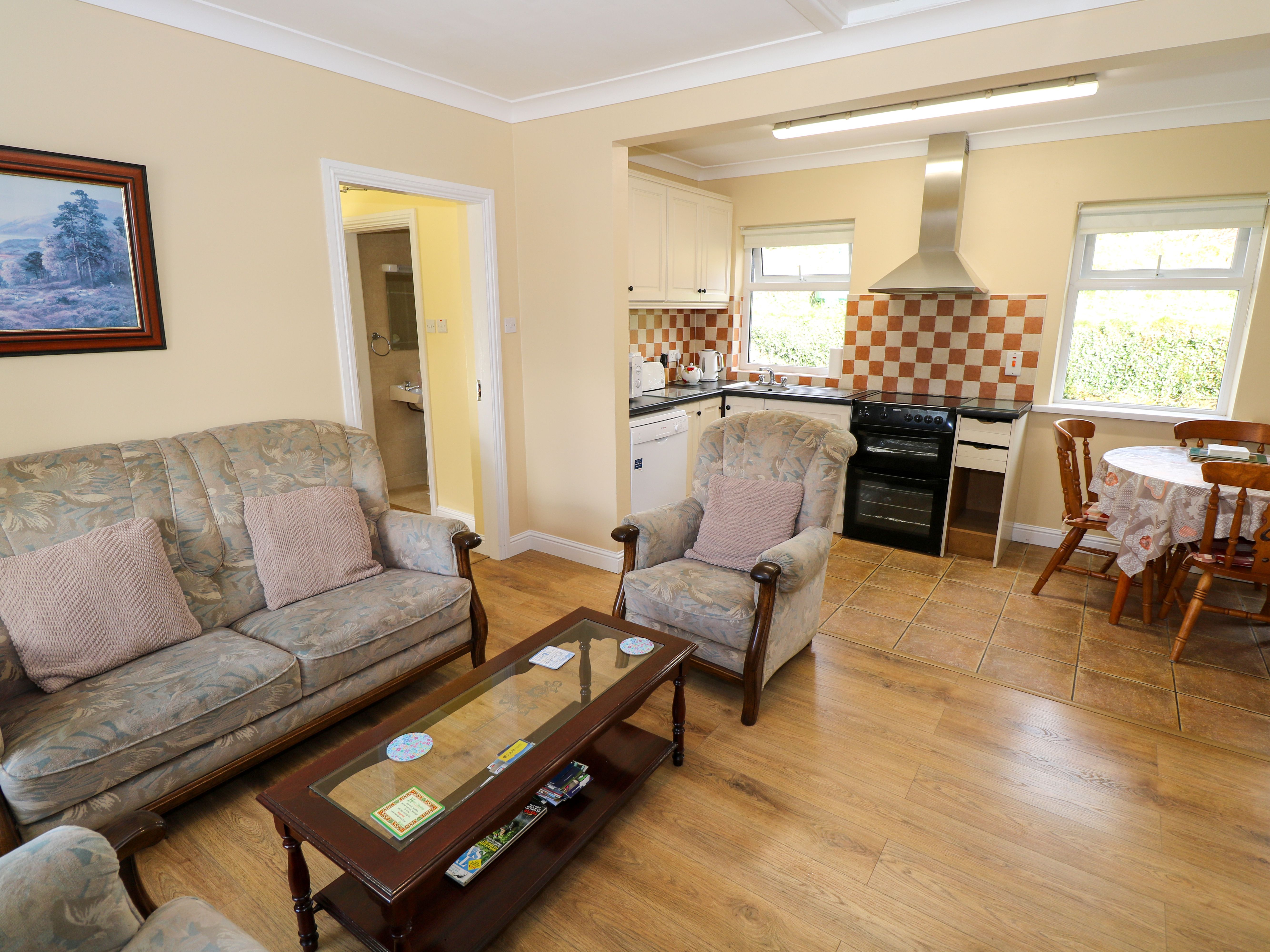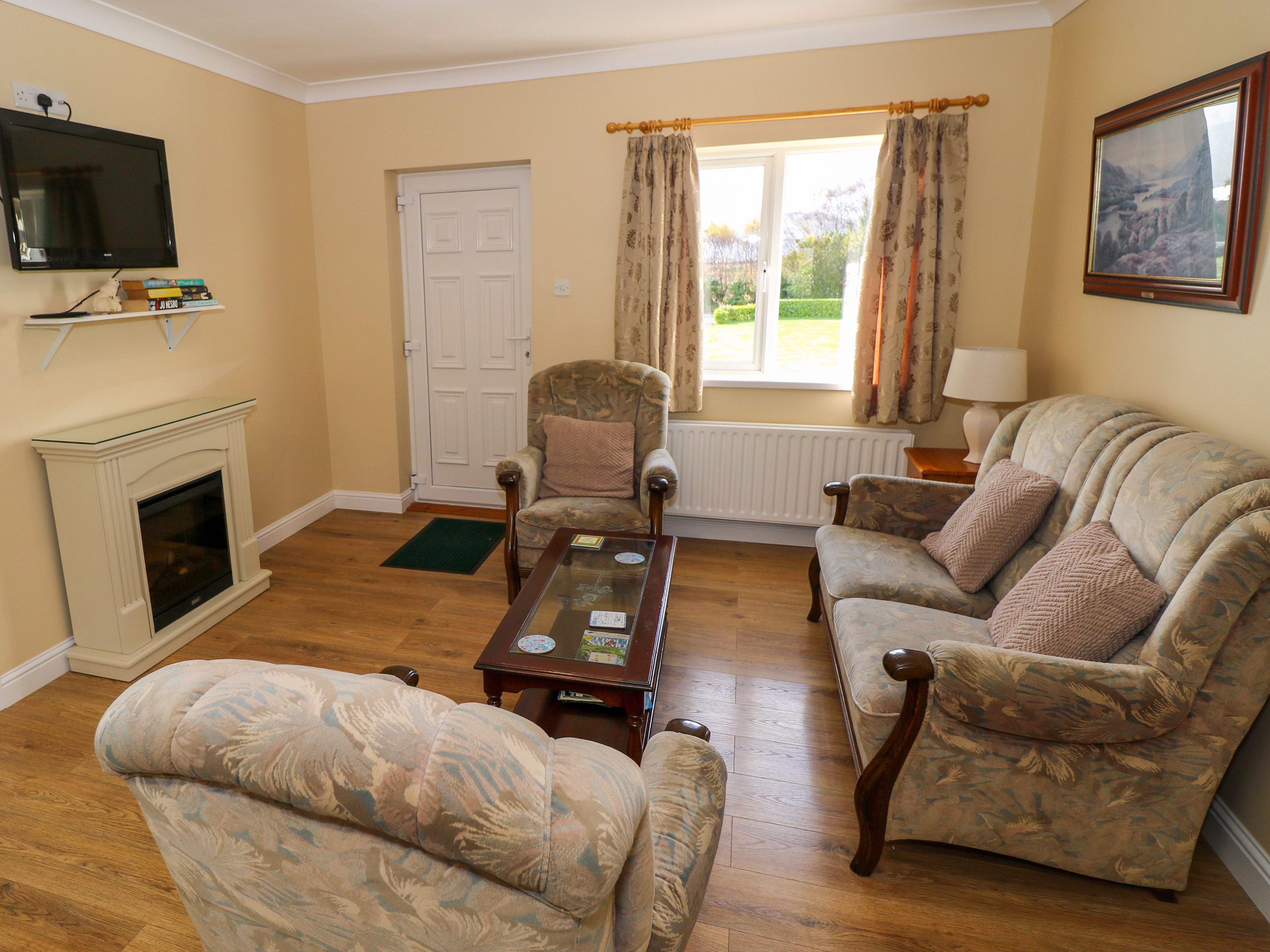 Oil central heating. Electric oven and hob, microwave, fridge/freezer, washing machine, tumble dryer, dishwasher. Smart TV, DVD, radio, selection of books, WiFi. Fuel and power inc. in rent. Bed linen and towels inc. in rent. Off-road parking for 4 cars. Enclosed shared front garden with lawn, gravel and furniture. Sorry, no pets and no smoking. Shop 0.1 miles, pub 0.1 miles, lake 1.2 miles. Note: This property can only accept Wednesday & Saturday arrivals, Please do not book to arrive for any other day