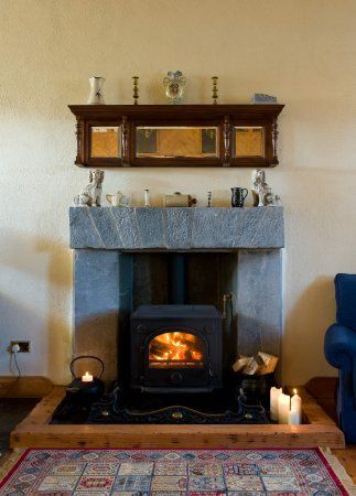 Oil fired central heating, open fireplace with wood burning stove (starter pack included)