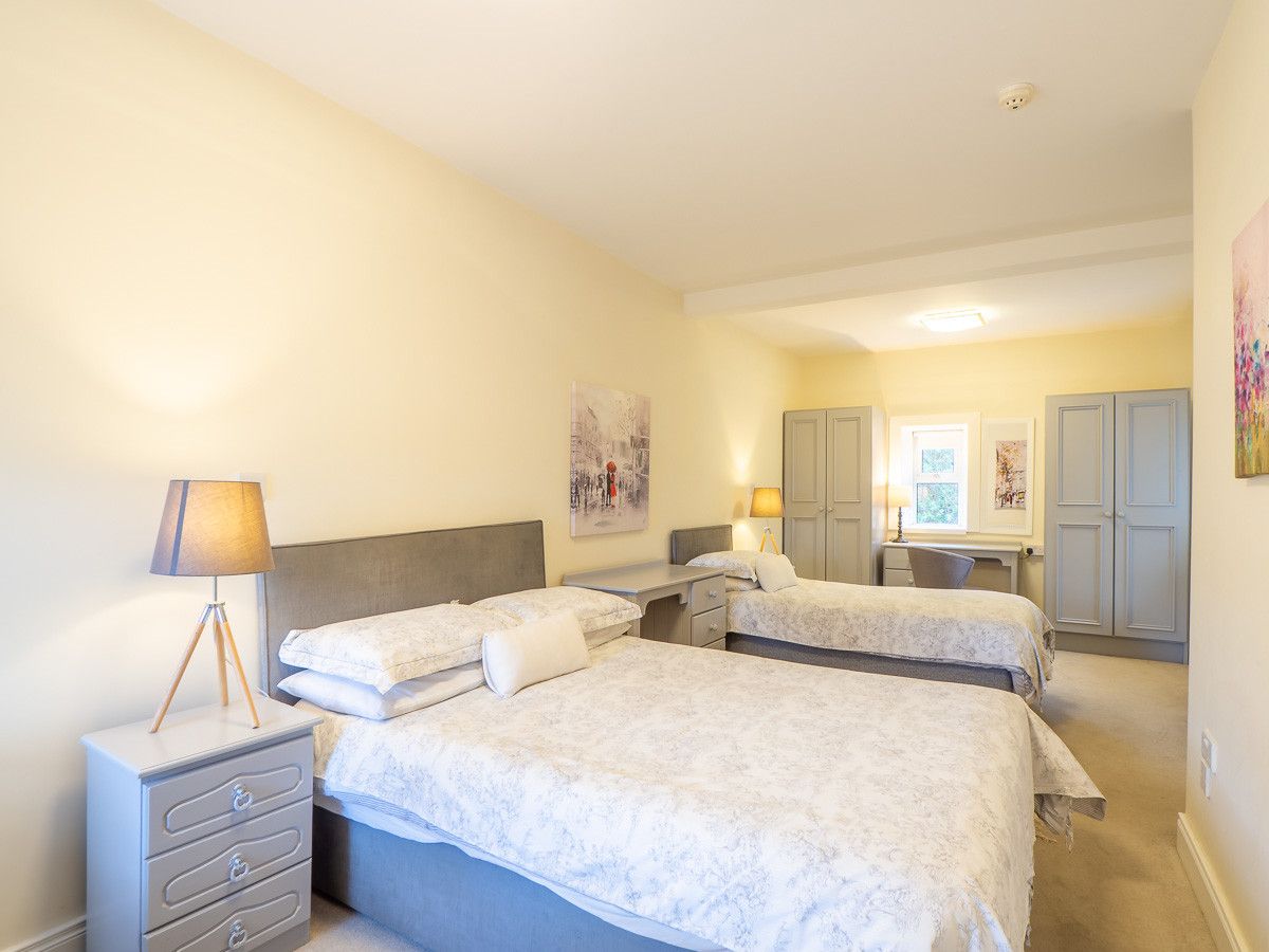 Upstairs you will find 5 ensuite bedrooms – three double rooms, one twin and one bedroom with a double and a single. All bedrooms have a TV also.