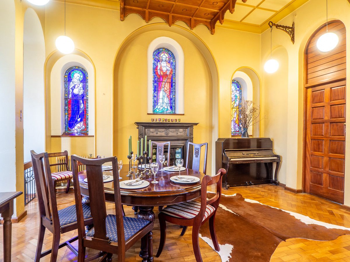 Also on the ground floor you will find a kitchen and a large store room. As this is was a B&B you will find a well equip kitchen with a large gas cooker and oven. The most unique part of this property is the old chapel. This large room makes a perfect dining room, meeting room and even has enough space for a small party or meeting. With many of the original features, including the stain glass windows, this space adds a really exceptional feel to your stay.