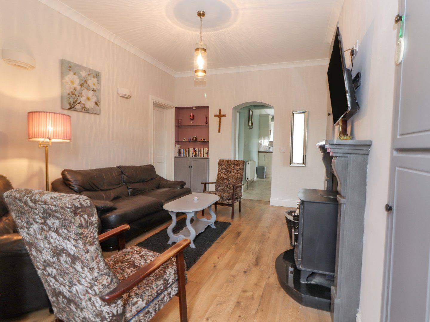 Amenities Oil-fired central heating. Electric oven and hob, microwave, fridge/freezer, washing machine, dishwasher. WiFi. Smart TV, Fuel and power inc. in rent. Bed linen and towels inc. in rent. Highchair and travel cot available on request. Off-road parking. Enclosed front and side garden. Sorry, no pets and no smoking. Shop 5.7 miles, pub 3.4 miles