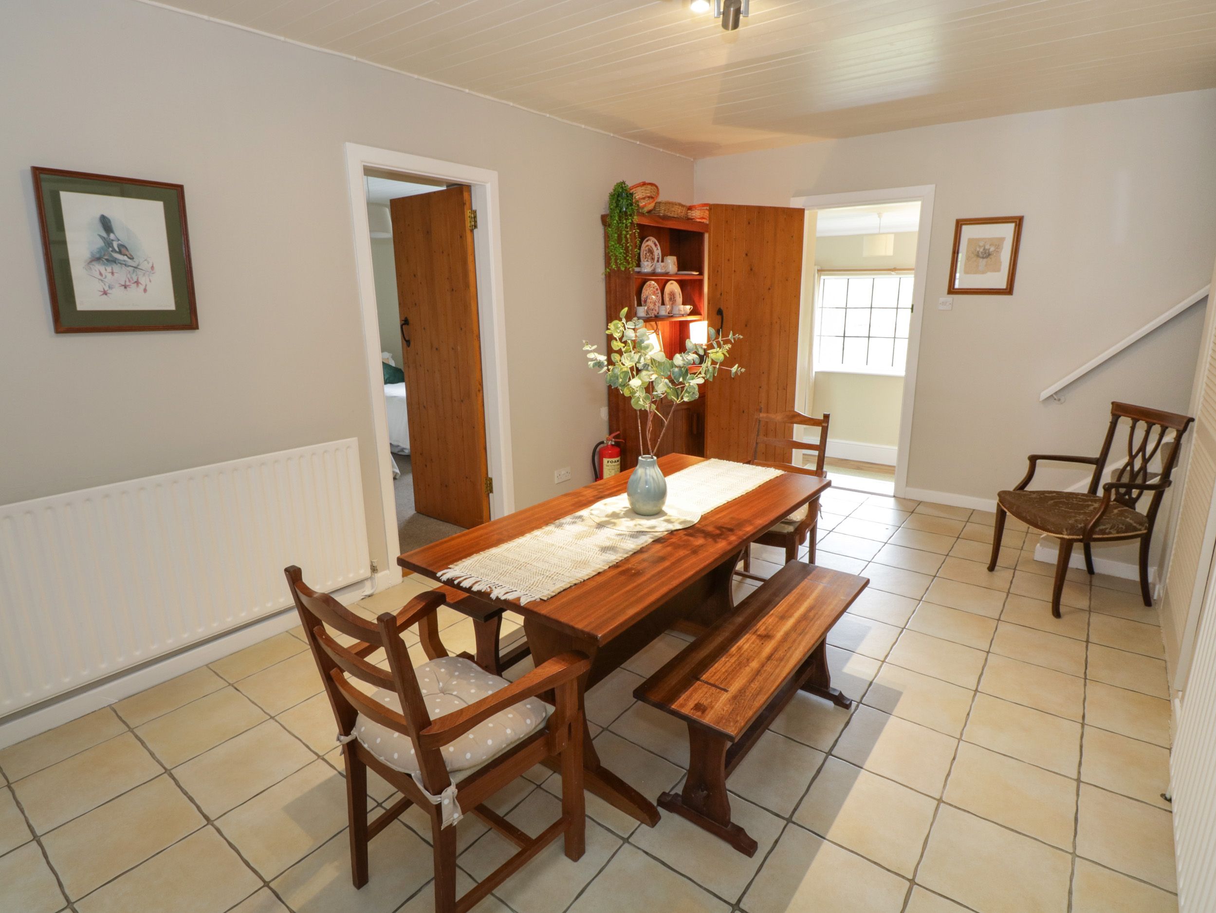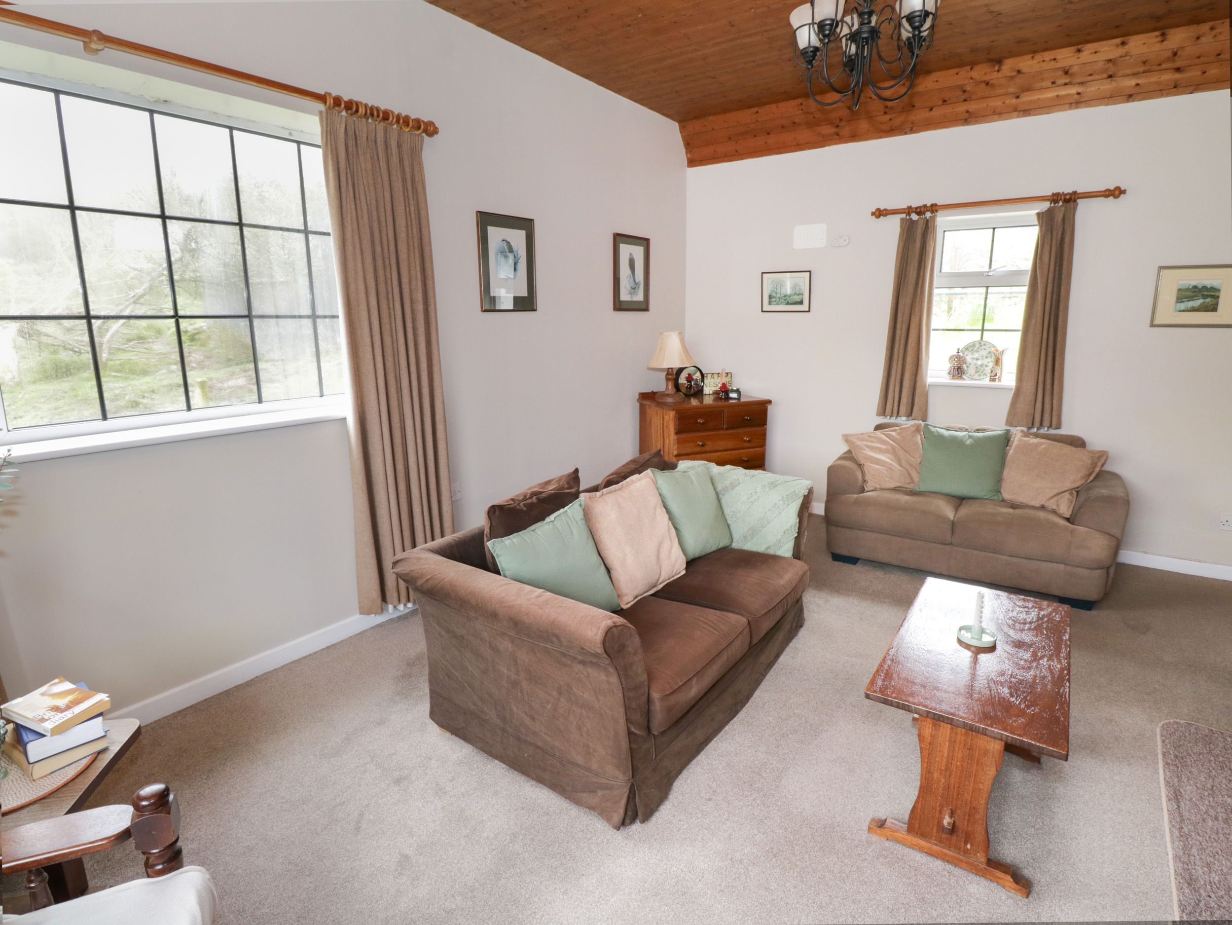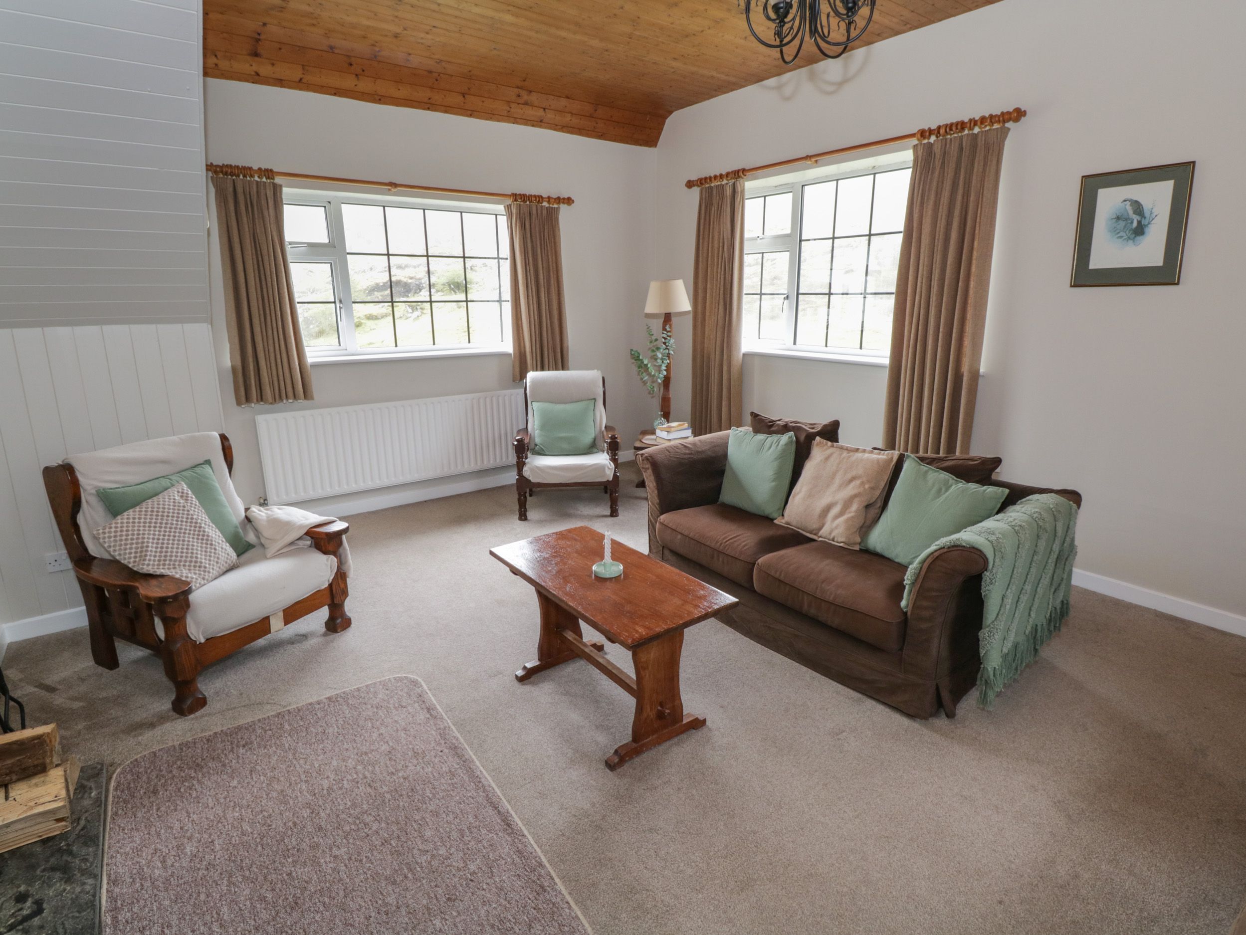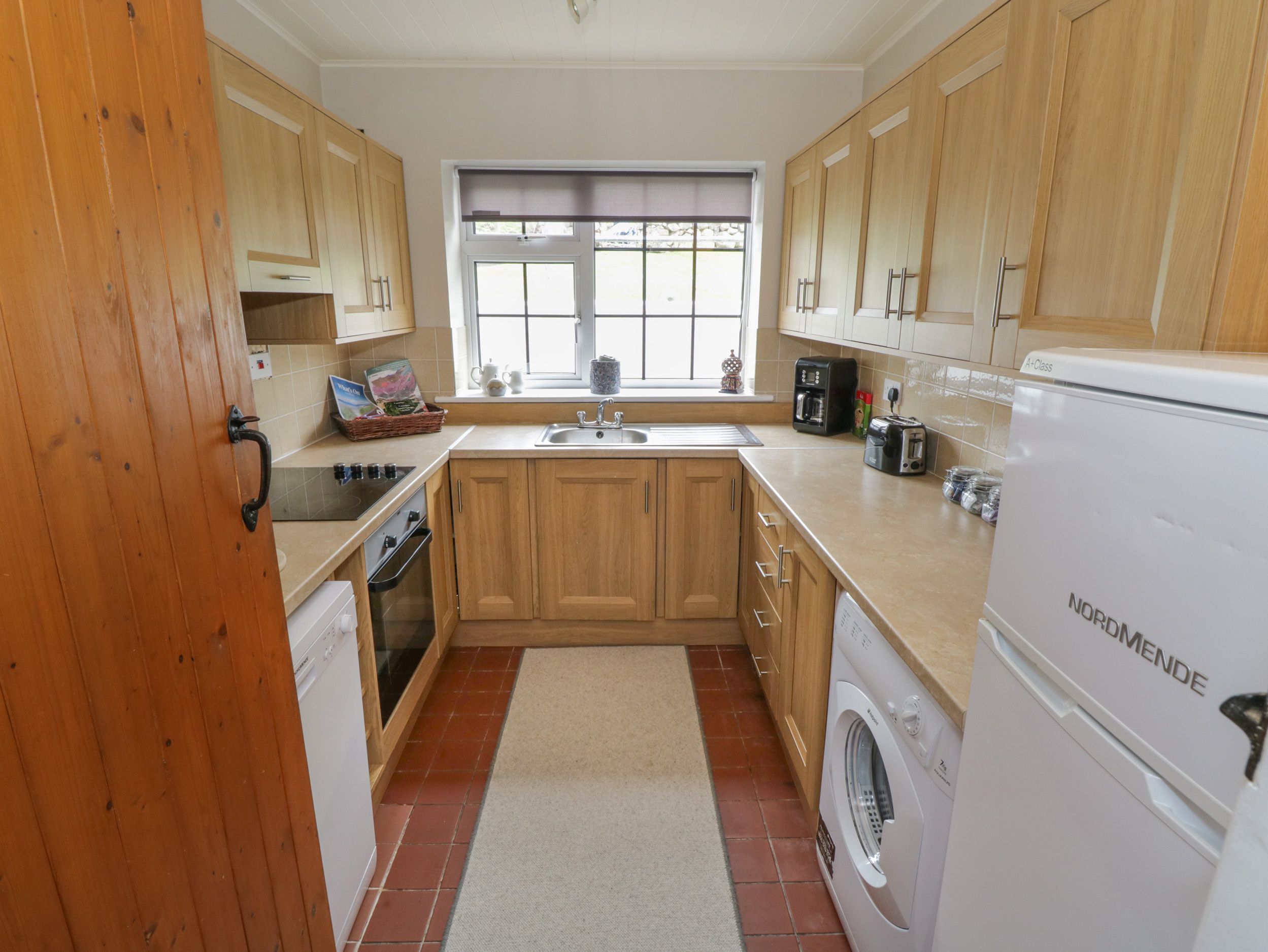 Oil central heating. Electric oven and hob, microwave, fridge/freezer, washing machine, dishwasher, kettle, toaster, coffee maker. TV and WiFi. Fuel, power and starter pack for woodburning stove inc. in rent. Bed linen and towels inc. in rent. Highchair and travel cot available. Off-road parking for 3 cars. Non-enclosed front lawn. One well-behaved pet welcome. Sorry, no smoking. Shop and pub 5.6 miles. Note: Check-in from 3pm, check-out by 10:30am. Note: There are steps down to the entrance, please take care