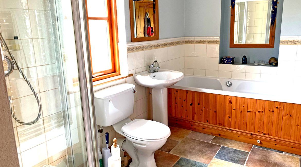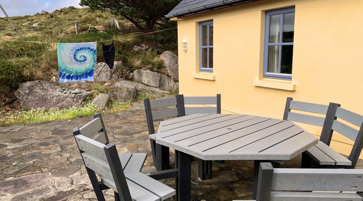 Inside: This is a great welcoming cottage and it all starts when you enter through the half door at the front of the house. You enter into the living room of the house which has cosy couches, a large stove and plenty of books to sit back, relax and enjoy. Either side of the fire place, you’ll find a bedroom – one with a double room and one with 2 single beds. Also off the living room you will find a very spacious, bright kitchen with everything you could need to cook up a storm! There is also another small stove to add to the tranquil atmosphere.