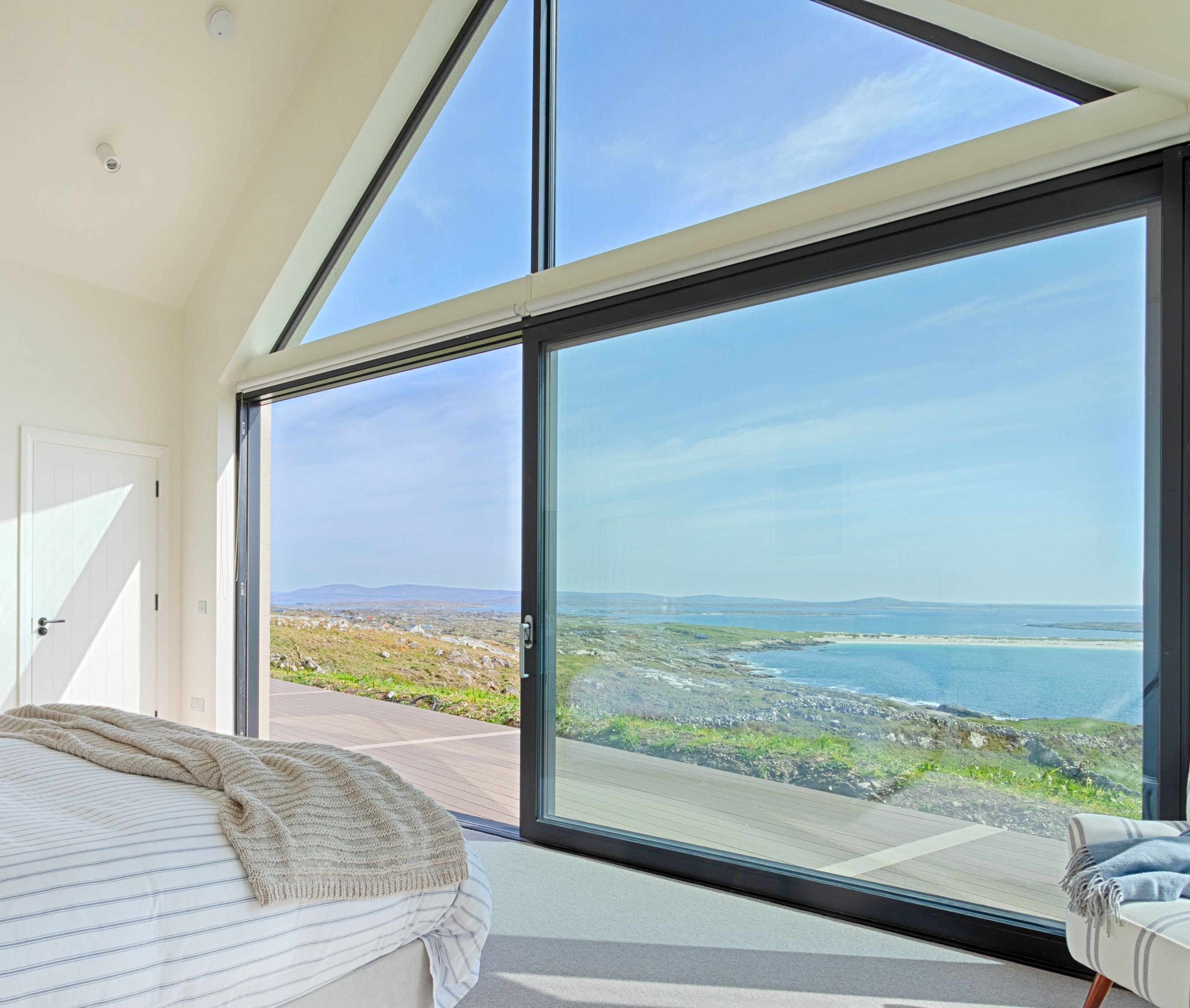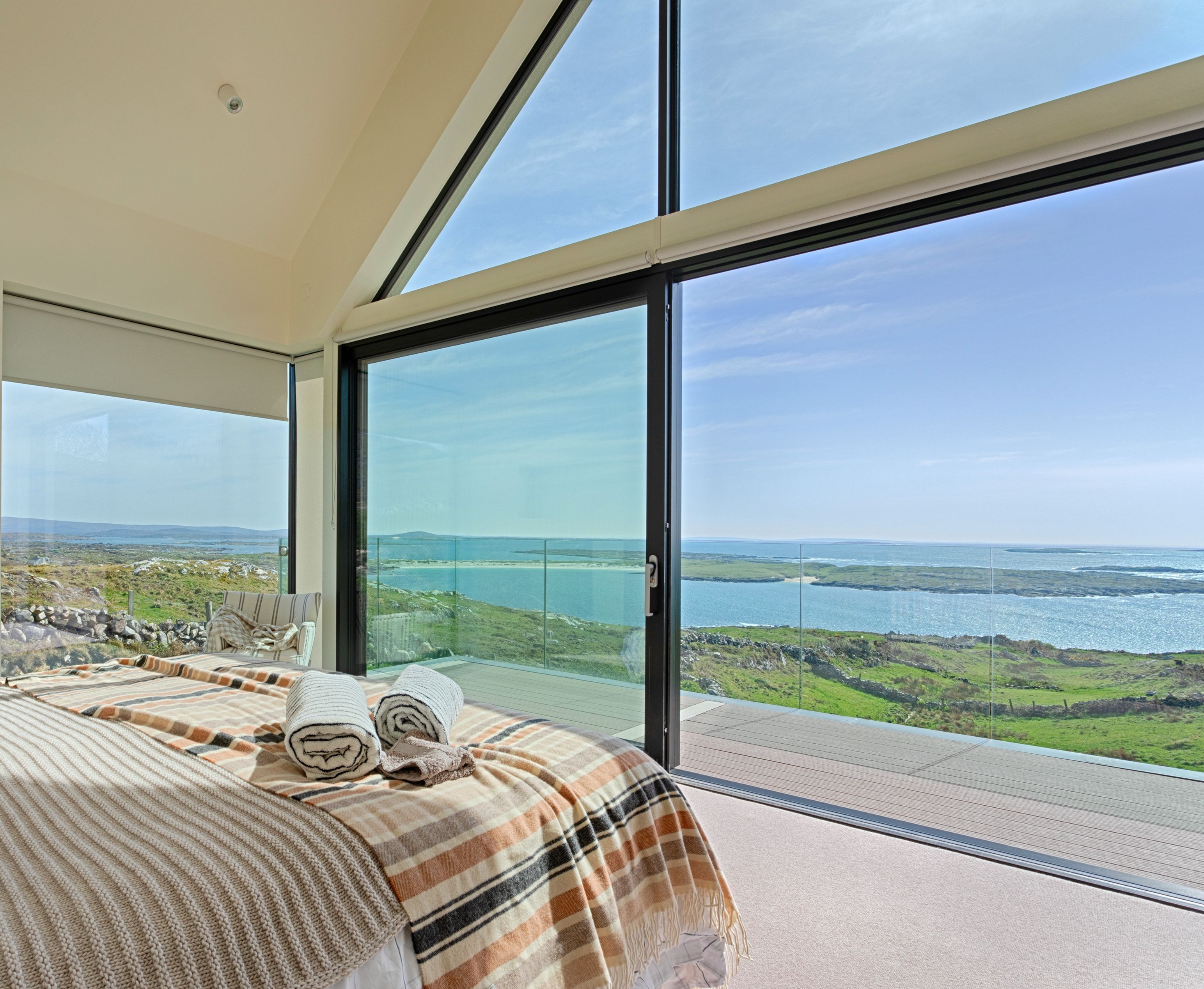 You step through a shiplap sliding door and gasp - wow. Through 30 metres of floor-to-ceiling glass, you’re met with an uninterrupted panorama of Dog's Bay’s renowned tombola beaches. Whether the sun is lighting up the horseshoe of white sand and turquoise waters - or a raging Atlantic storm plays out before your eyes - this stunning home lays strong claim to having Ireland’s most spectacular view.