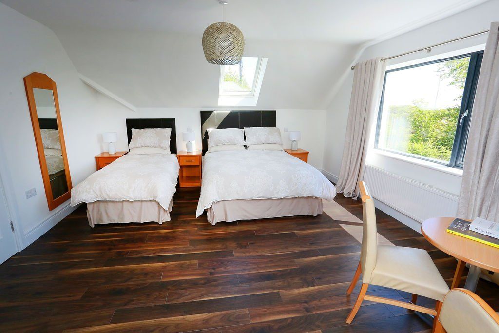 Downstairs: 3 bedrooms- 1 x King size bed and en-suite bathroom. 1 x King size bed with open turf fire, 1 x King size bedroom