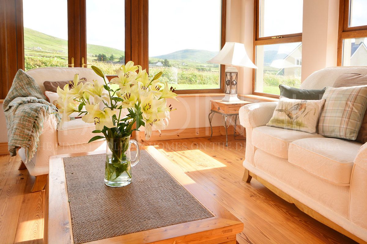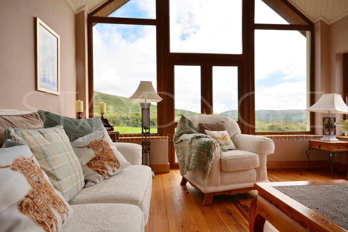 Atlantic Lodge is a charming country getaway that sleeps six. Nestled at the foot of Mount Brandon within walking distance of the famous Bothar pub. The living space has it all, a huge classic kitchen, cosy lounge, separate dining room and the perfect sunroom to relax in. Elevated on the hillside it has wonderful views that take in the Three Sisters, Brandon Creek, the Sleeping Giant Island & the Atlantic.