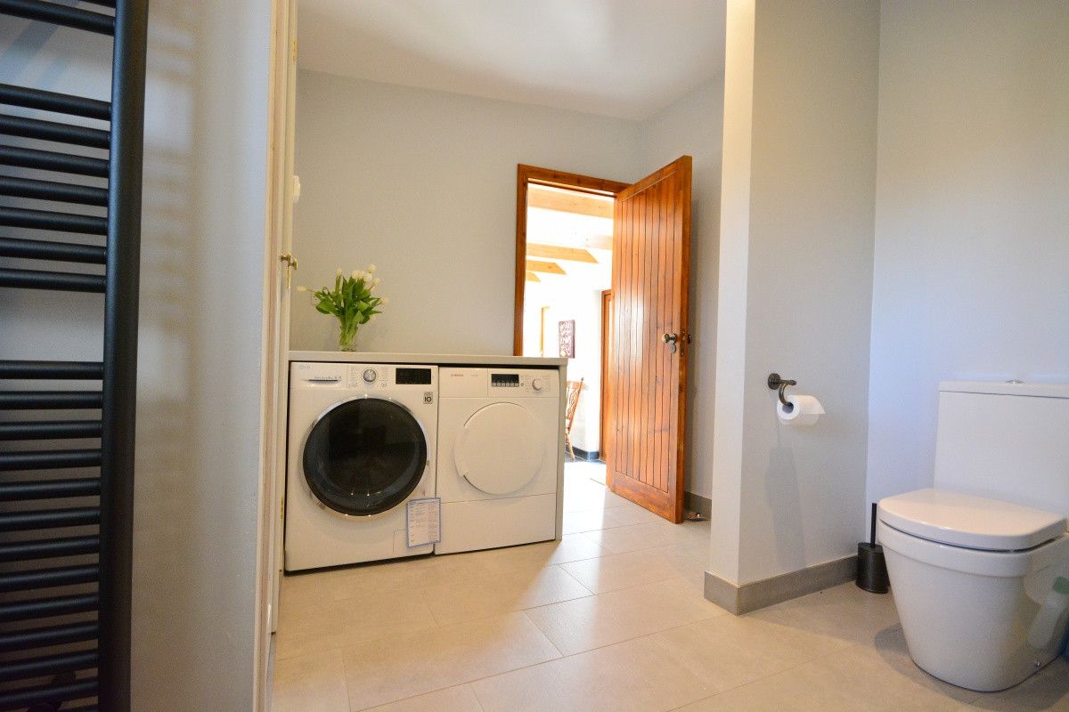 Beautiful established gardens, parking for 2/3 cars and a patio area with an outdoor wooden bench. In the garden is a large yurt used as a utility room with a washer and dryer and can double up as large playroom for kids in bad weather. A beautiful space.