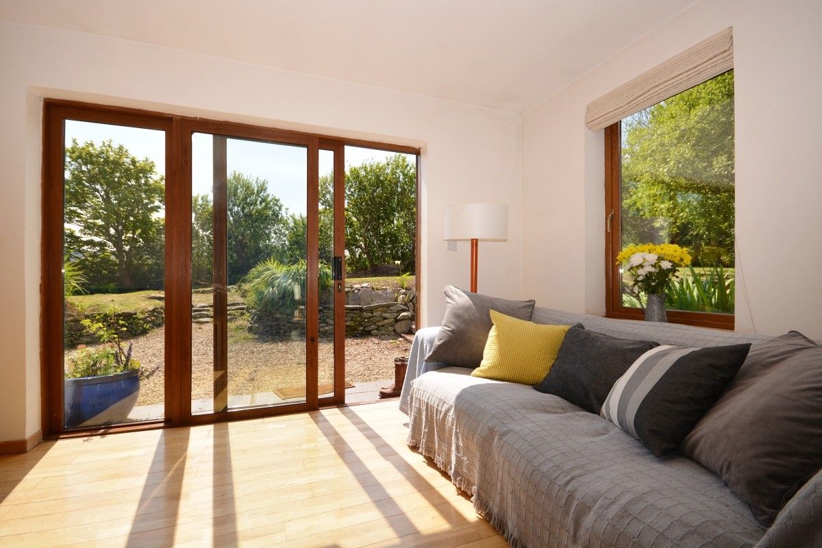 Ballywiheen Cottage has four bedrooms. On the ground floor is the quaint master bedroom which leads off the sunroom at the southern end of the house has patio doors opening into the garden and its own ensuite. Also on the ground floor is a large double bedroom adjoining the dining area and has its own ensuite with a bath. There are two twin rooms in the mezzanine area up the wooden steps with cute furnishings and velux windows.