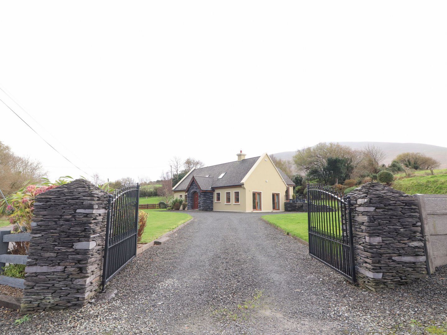 The living areas in this property consist of an open-plan kitchen, dining area and sitting area with double-sided woodburning stove, a sunroom, and a utility, along with four bedrooms, including a double with en-suite, a ground-floor double with en-suite, a ground-floor double with Jack-and-Jill access into a wet room, and a family bedroom, along with a bathroom. Appliances include an electric oven and hob, microwave, fridge, freezer, washing machine, tumble dryer, dishwasher, and hairdryer, and for entertainment, a Smart TV, DVD player, CD player and WiFi. Stairgate, cot and two highchairs available. Outside there is an enclosed, multi-level garden with lawn, patio, furniture and a shed, and a private driveway. Ben linen, towels, and a starter pack for woodburning stove are included in the price. One well-behaved small pet welcomed, but sorry, no smoking. You'll find a shop in 2.9 miles and a pub in 2.5 miles. Rocklands House is a wonderful base for exploring County Kerry. Note: There are steps in the garden. Note: Check-in from 4pm, check-out by 10am. Note: Babysitting services are available. Note: Fuel and power are not included in the rent; both are monitored by a meter and will be invoiced by the owner. Note: The owner lives next door. Note: A welcome hamper will greet you. Note: There are steps up to the sunroom.