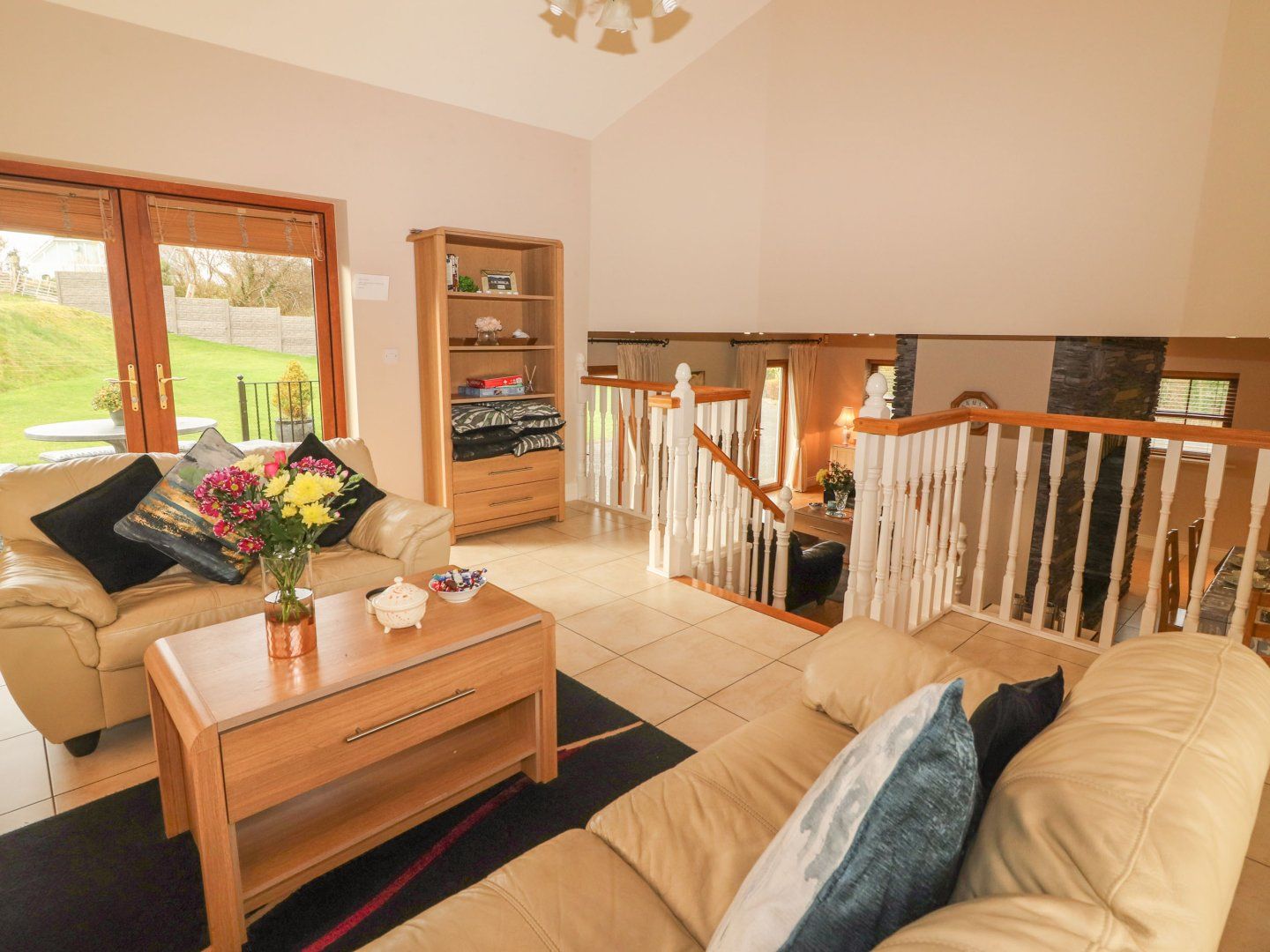 Sykes Gem Awards 2024 Gold winner for Best In Ireland. Four bedrooms: 1 x double with en-suite walk-in shower, basin and WC, 1 x ground-floor double with en-suite walk-in shower, basin, and WC, 1 x ground-floor double with Jack-and-Jill access into wet room with shower, basin, and WC, 1 x family room with double and single. Bathroom with bath, shower over, basin, and WC. Open-plan living space with kitchen, dining area and sitting area with double-sided woodburning stove. Utility. Sunroom