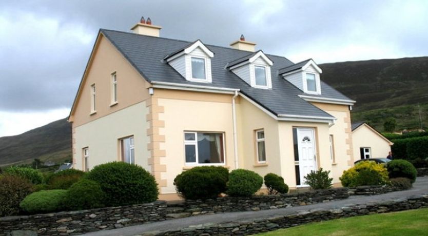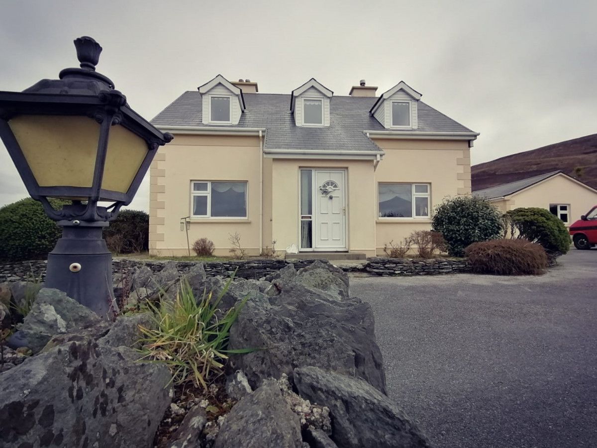 Quiet rural location on the Ring of Kerry. Extensive views of the Atlantic ocean and Valencia Island. Close to Beaches-Golf Course-Horse riding-Private walking routes-Hill Walking. Children's play area.