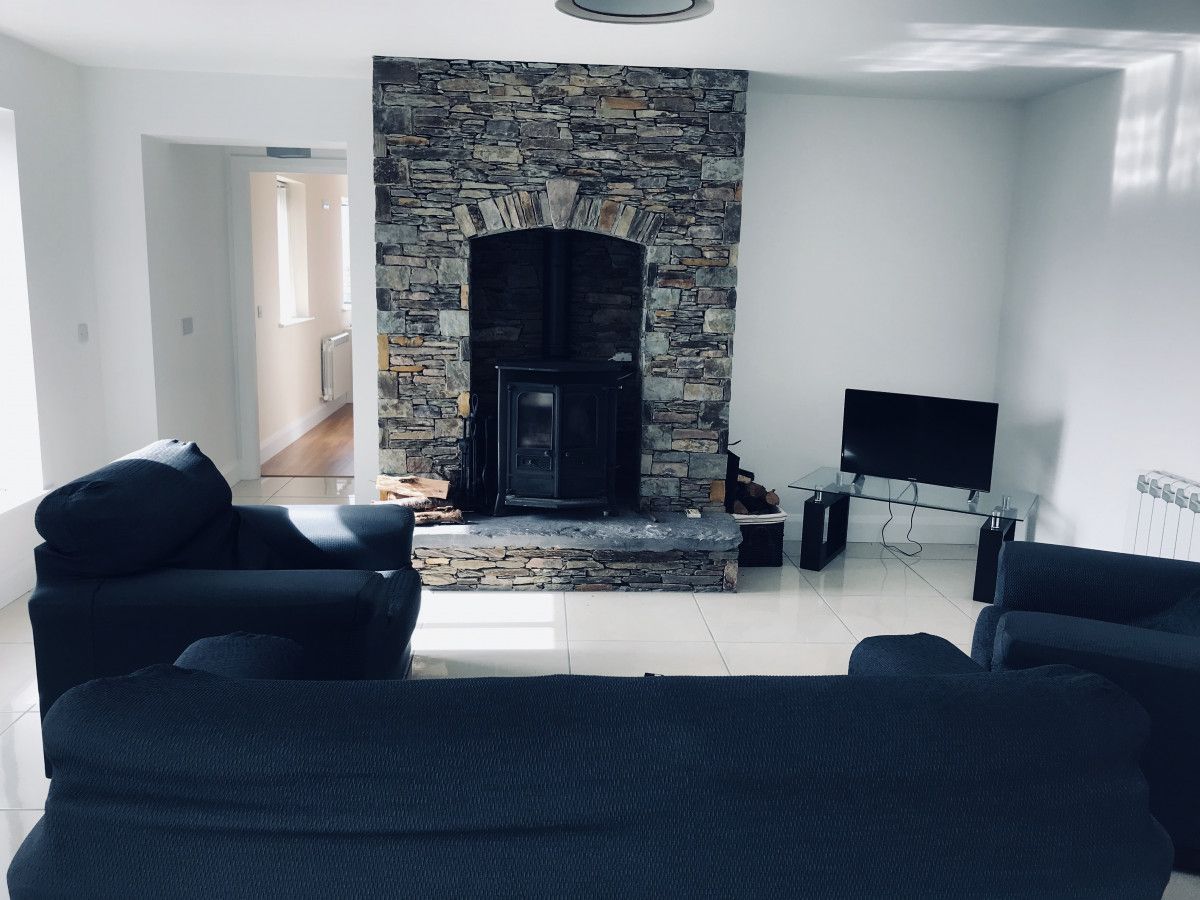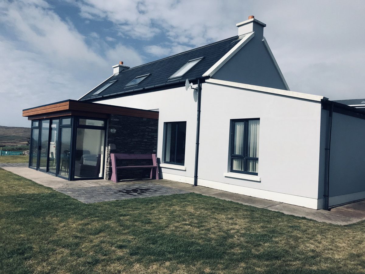Brand new build situated on the hillside in a working sheep farm with stunning panoramic views of Cahersiveen town, Valentia Island and the vast Atlantic Ocean.