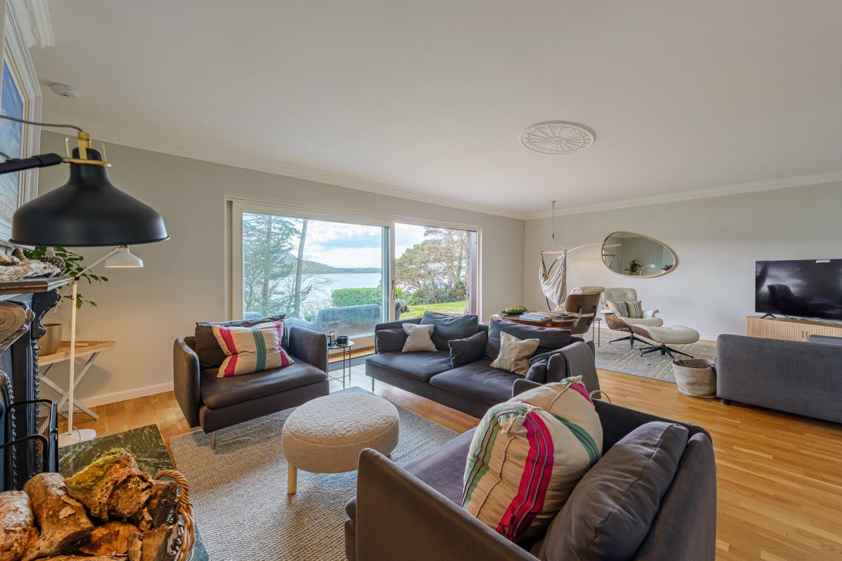 This is a superior family home which has been tastefully finished and fitted to exacting standards, while still retaining all its original characteristics and charm. An impressive central living area features floor-to-ceiling sliding glass doors which overlook a large stone patio, expansive lawns and 70 meters of private lakefront.