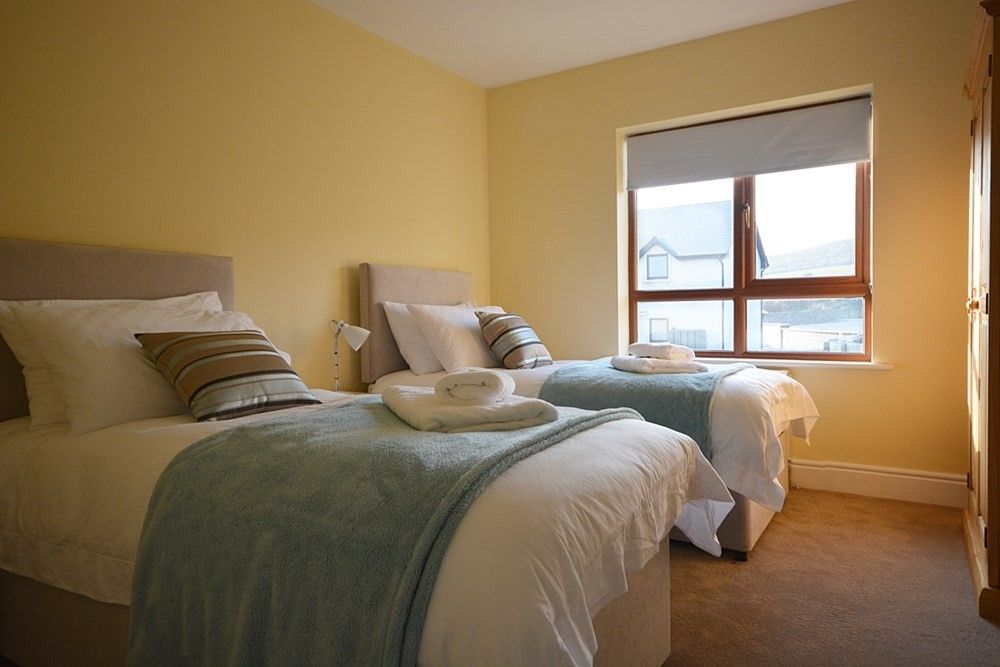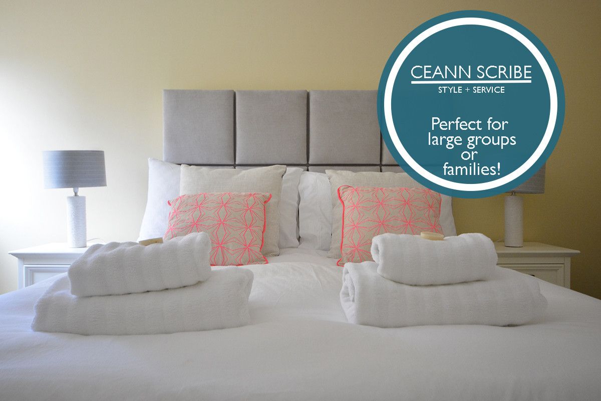 Ceann Scribe is spacious three storey home with a great location at the top of Dingle town with lovely views of the harbour. With five sizable bedrooms with lovely furnishings and four bathrooms it can cater for large groups or two families. Finished to a high standard with all the little luxuries you expect from a YNA holiday cottage. Free WIFI and just a few minutes walk to all the restaurants, bars, galleries and shops.