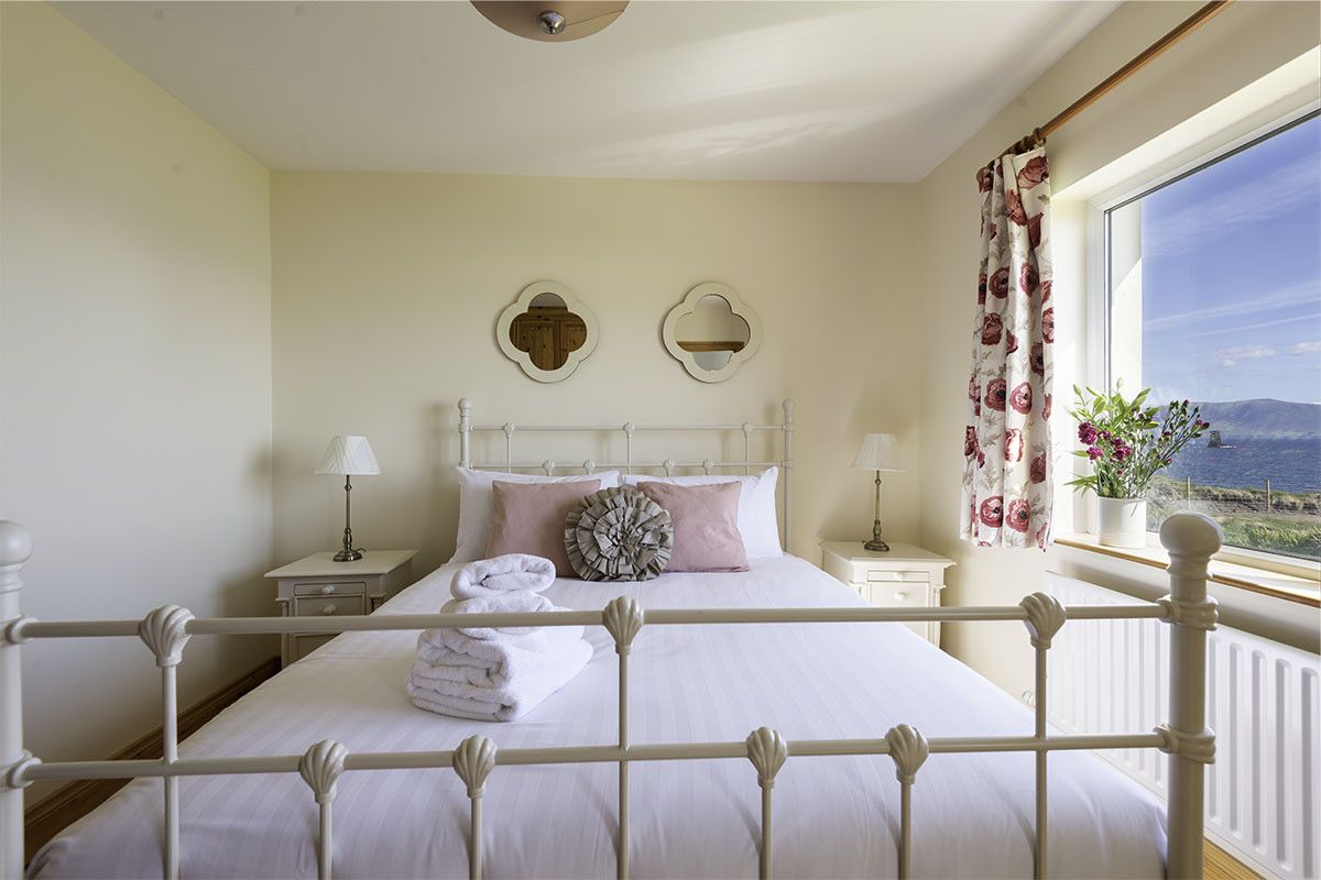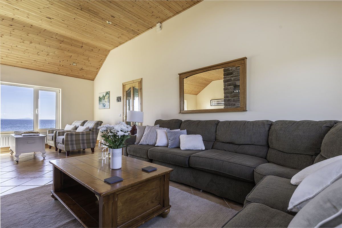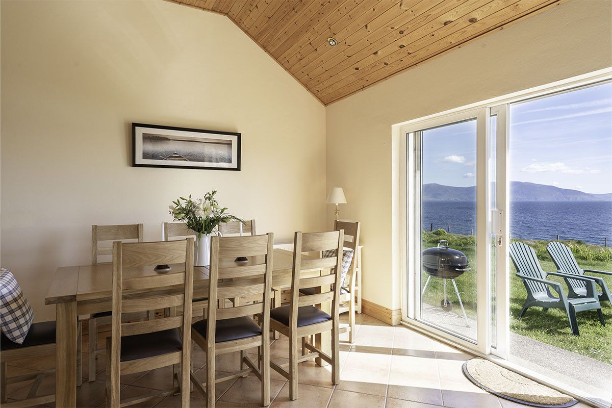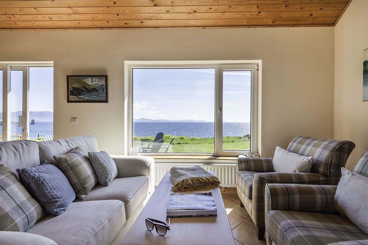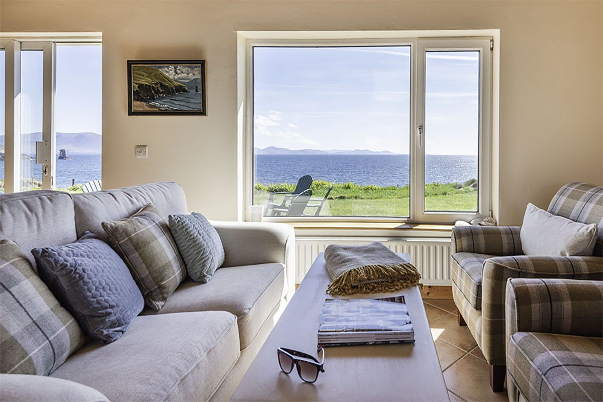 Perched right on the cliff-edge above the waters of Dingle Bay and the sea stack and cliffs spread out in front of you, this comfortable, spacious four-bedroom beach bungalow is a water baby’s dream retreat. Just a short twelve minute drive from Dingle Clifftop is all about the sea, with large picture windows and double glass doors framing the views from the high-ceilinged open plan kitchen-living-dining area. Entering into a traditional stone-flagged hallway, with a tiled living area and wooden-floored bedrooms it’s a low-maintenance, high-impact holiday home perfect for outdoors-loving families.