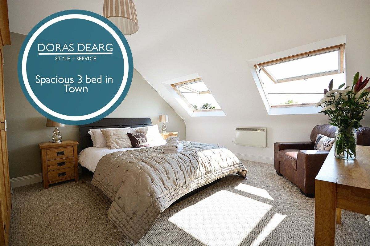 Doras Dearg (Red Door) is the perfect Dingle Den. Close to everything you want to be close to with its own parking. This delightful second floor apartment is filled with light, surprisingly spacious and a great base to relax in while exploring Dingle and the Peninsula. The two double bedrooms are huge and the open plan living space has plenty room for 6 adults or a family.